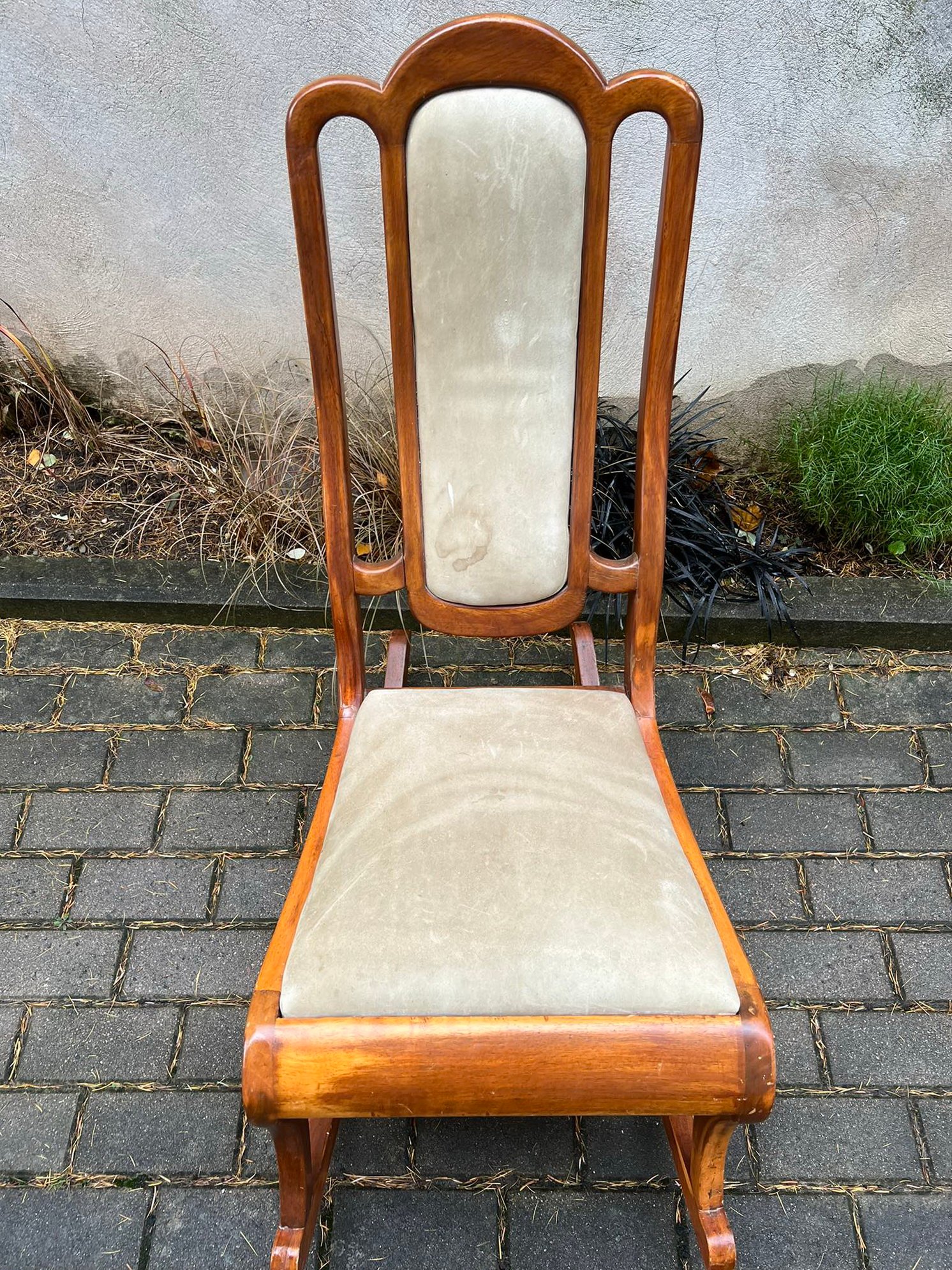Supamas krėslas antikvarinis, Biedermeier stiliaus, tvirtas. Sėdimosios dalies aukštis 40, plotis 37, gylis 45/ Atkaltės aukštis 100, plotis 45 cm. Pagrindo atramų ilgis 84 cm. Nereikalingas pakojis. Kaina 138