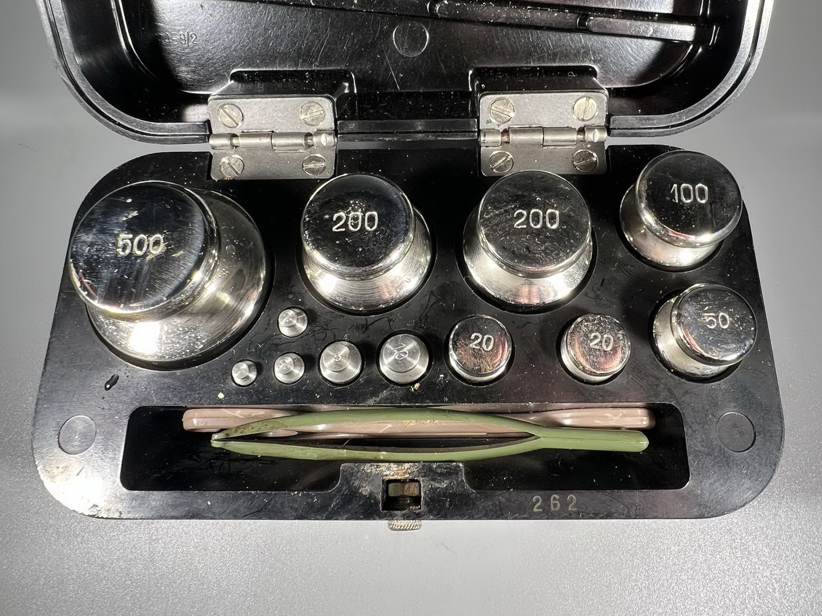 Svarelių rinkinys, komplektas, svareliai su dėžute sovietiniai, tarybinių laikų. Kaina 48