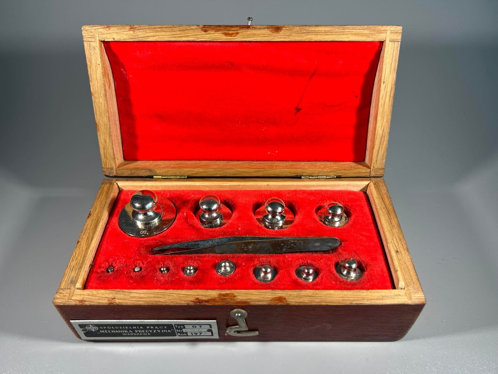 Svarelių rinkinys, svareliai medinėje dėžutėje. 1972 m. Kaina 38