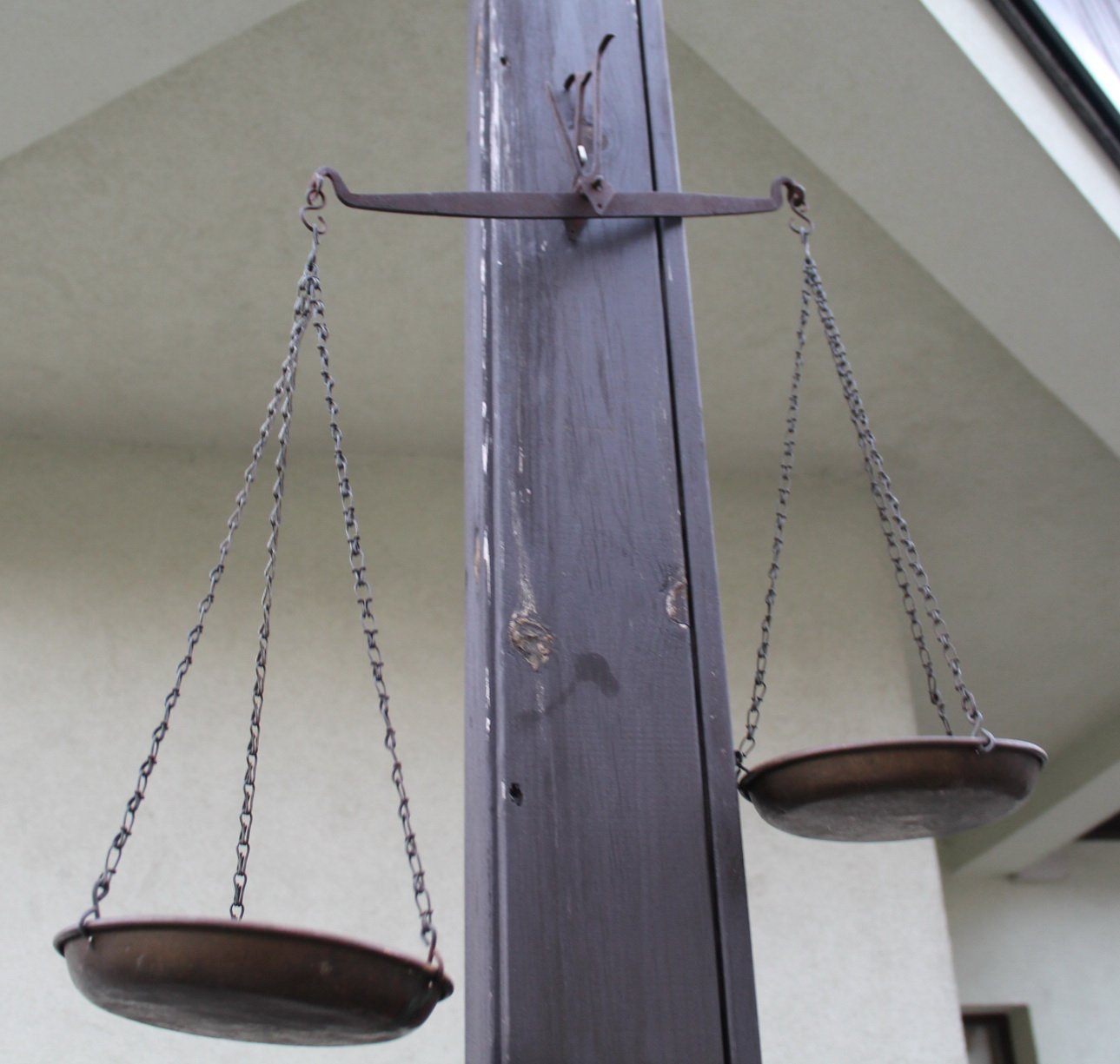 Svarstyklės pakabinamos antikvarinės kaltinės, lėkštinės. Svarstykliu skersinio ilgis 40 cm. Kaina 63