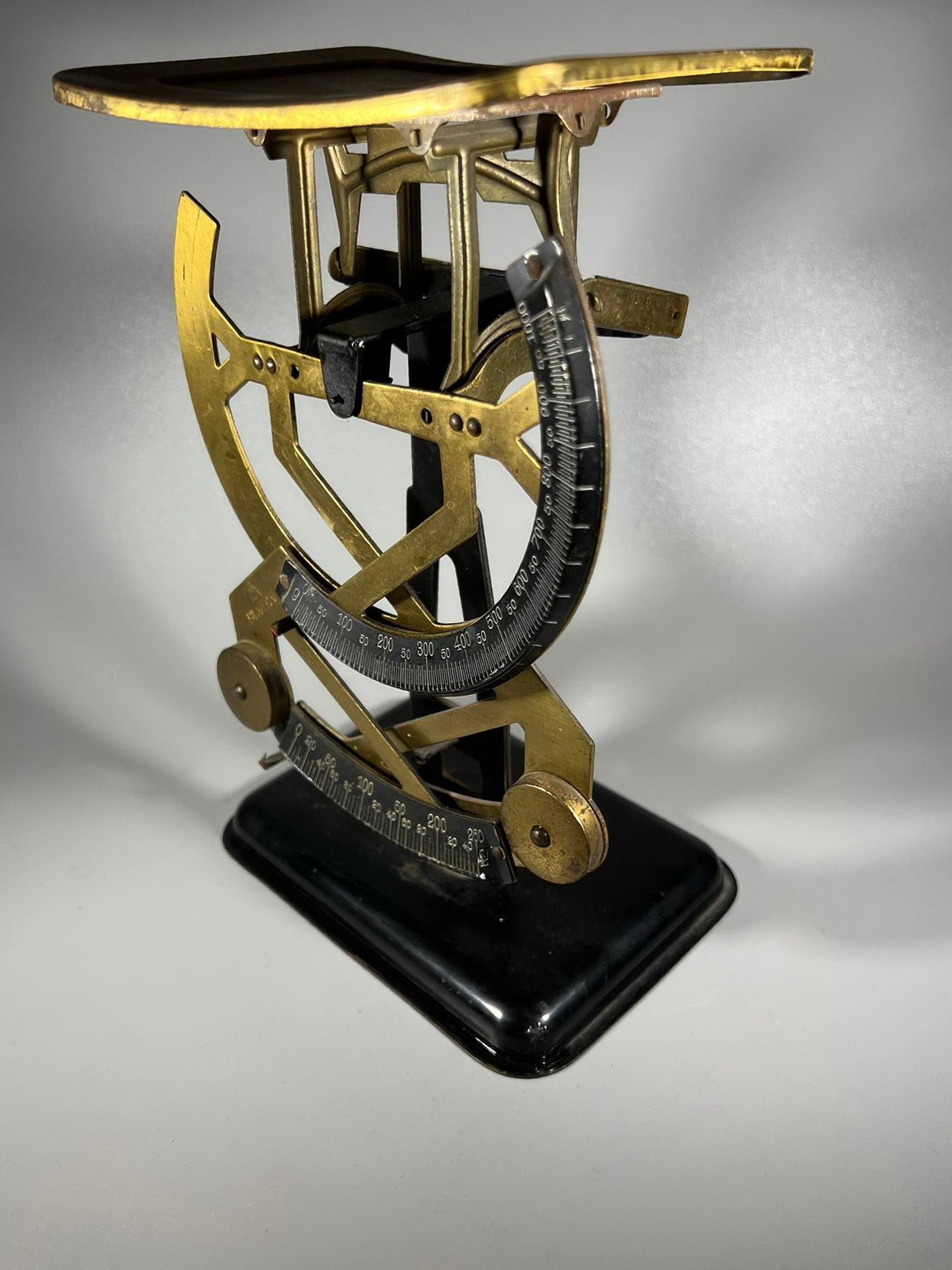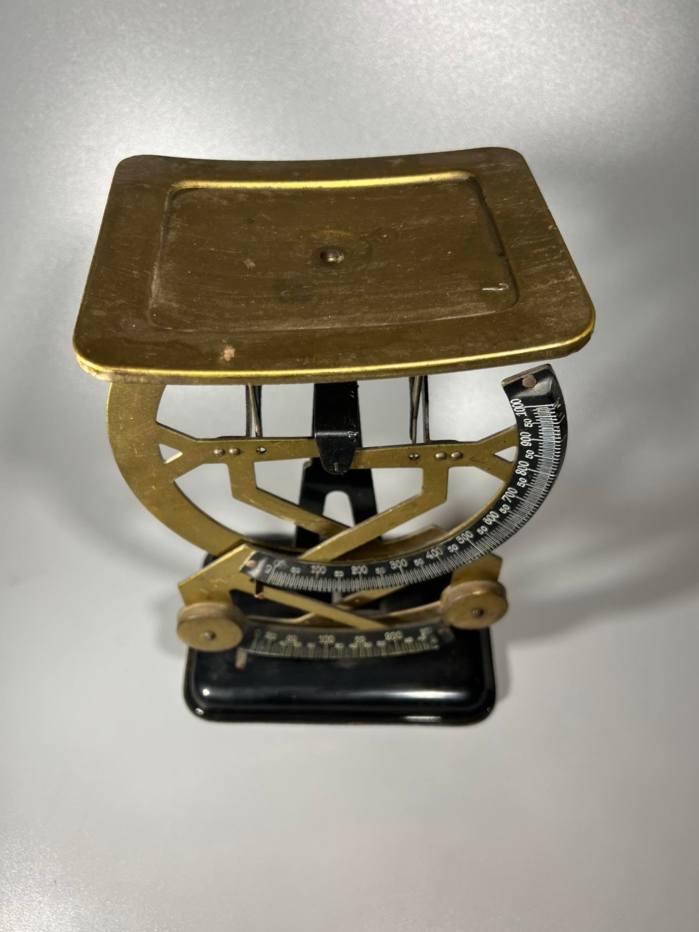 Svarstyklės pašto dvigubos, metalinės, antikvarinės. Veikiančios. Aukštis 23, ilgis 14, plotis 10 cm. Kaina 63