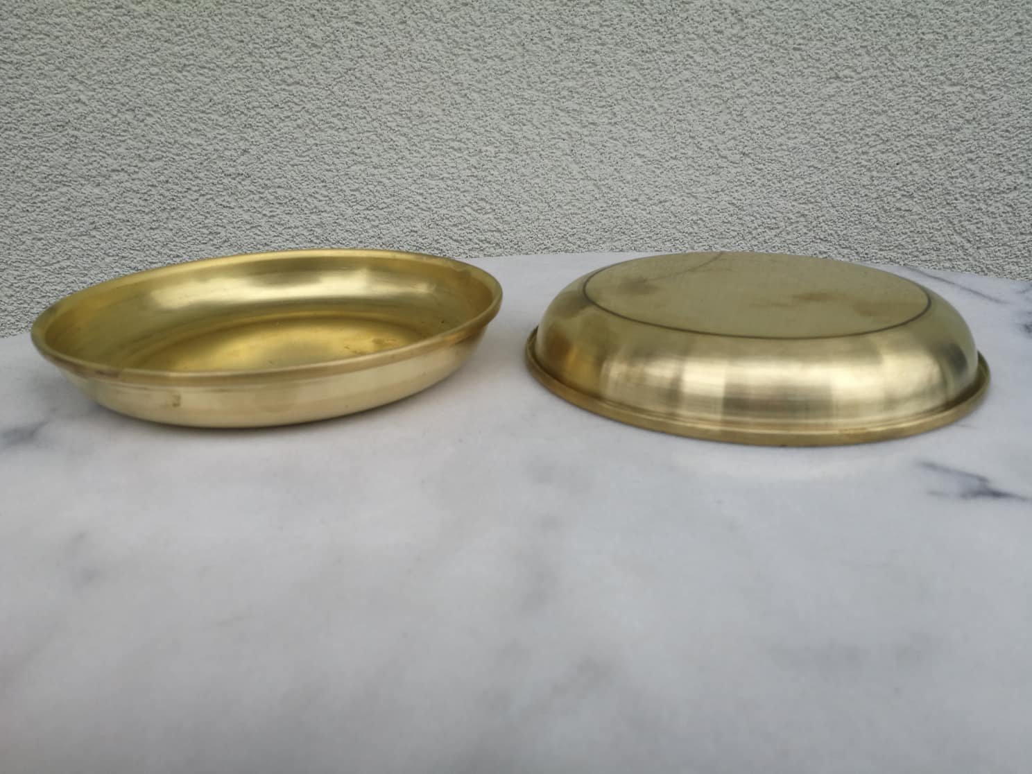 Svarstyklių lėkštės žalvarinės. 2 vnt. Kaina 32 už abi