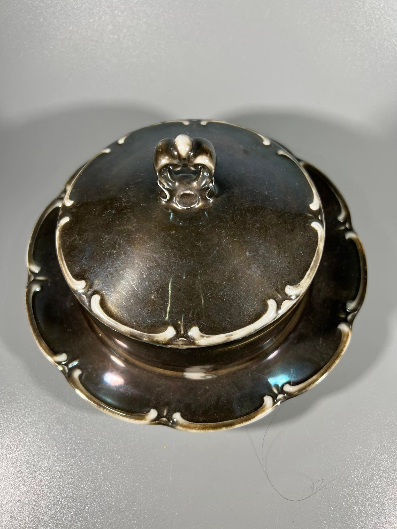 Sviestinė porcelianinė antikvarinė Feinsilber Bavaria. Aukštis 11, skersmuo 18 cm. Kaina 33