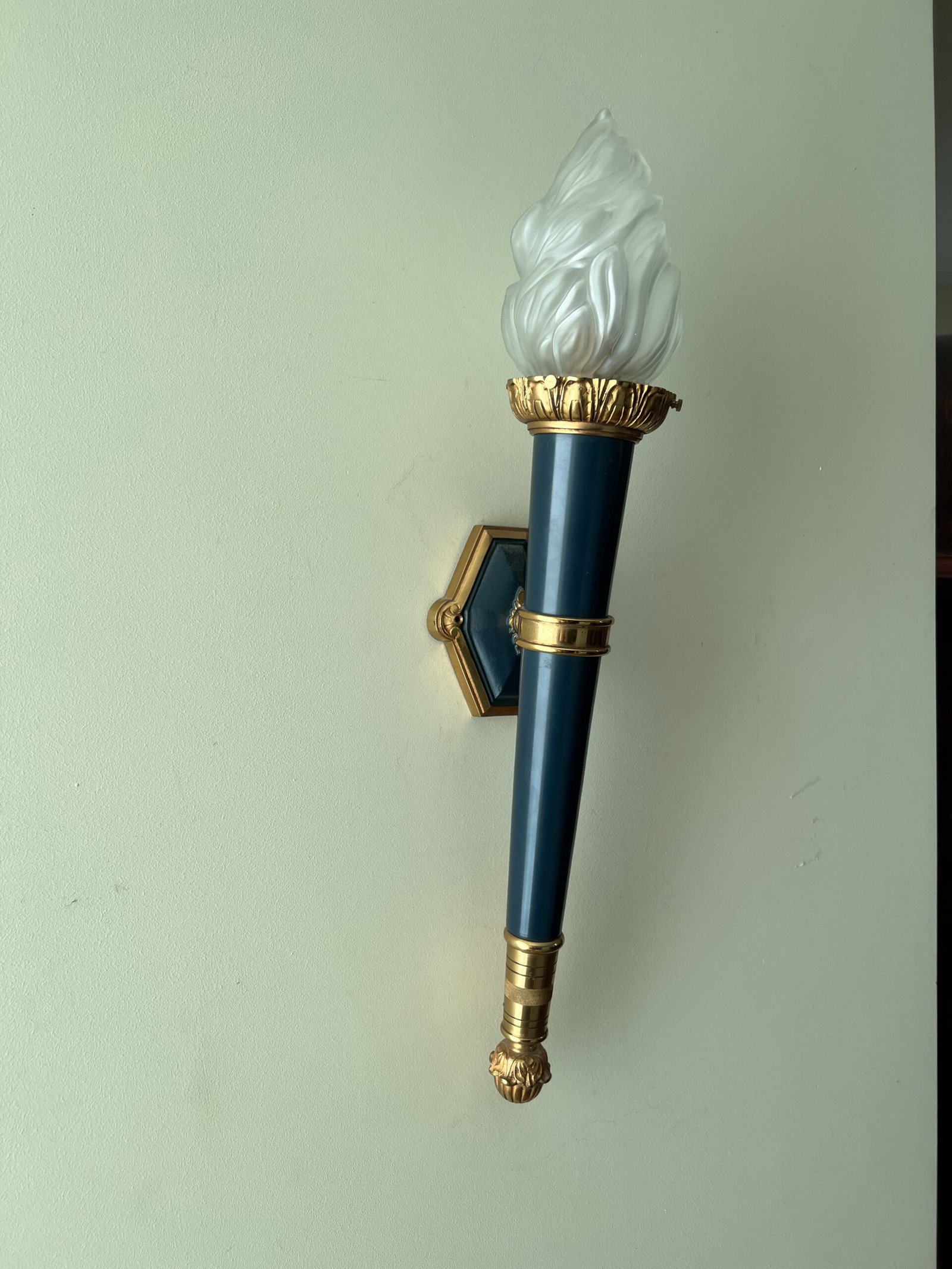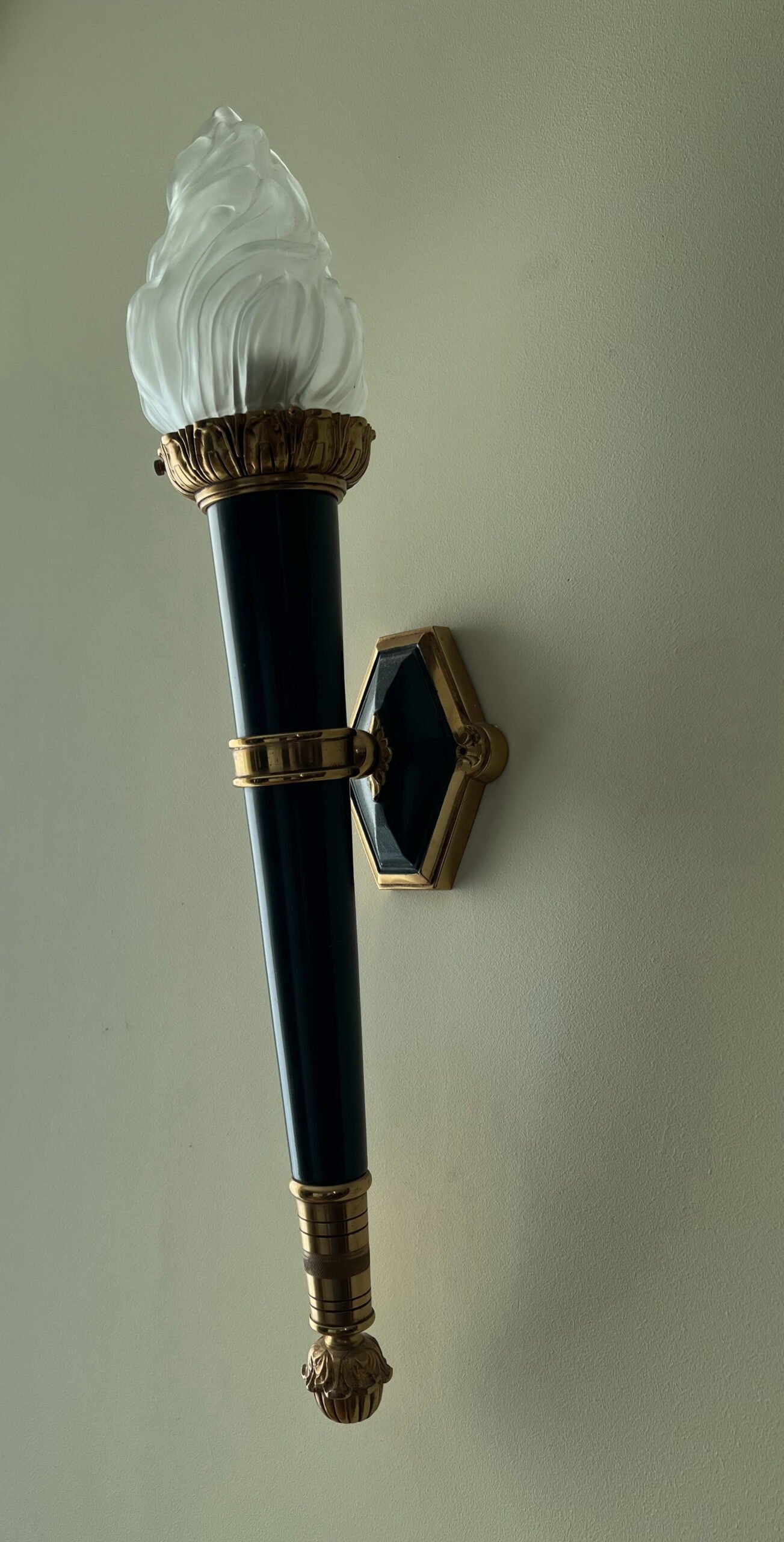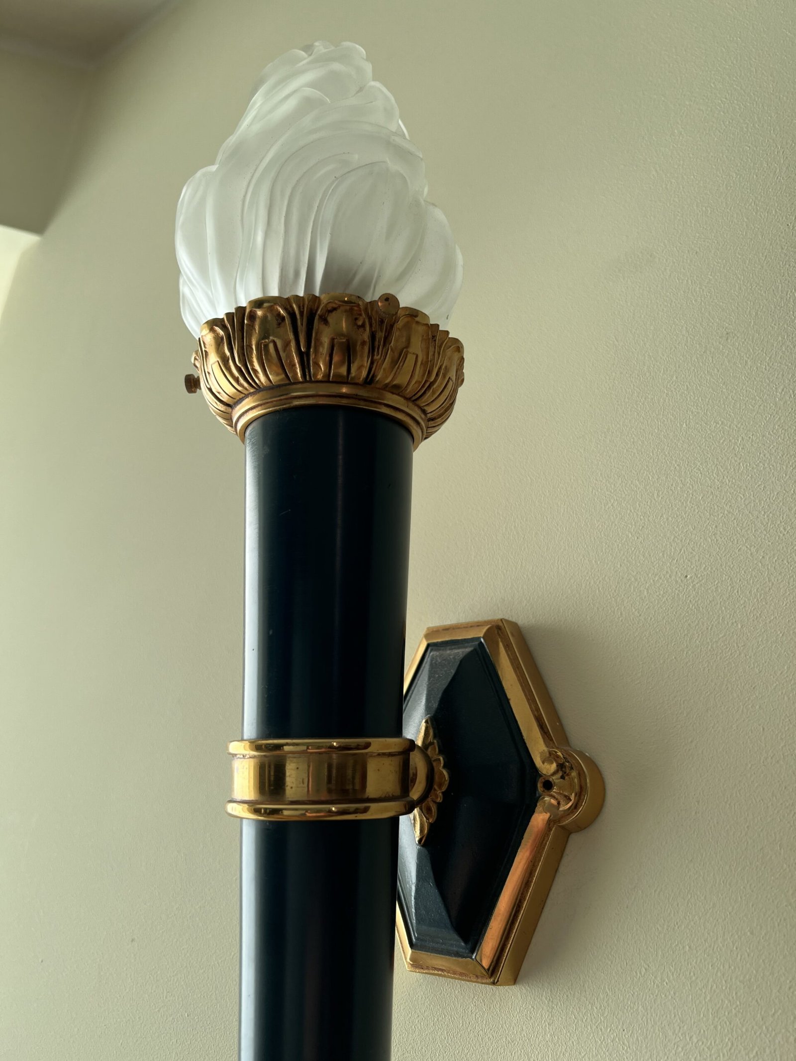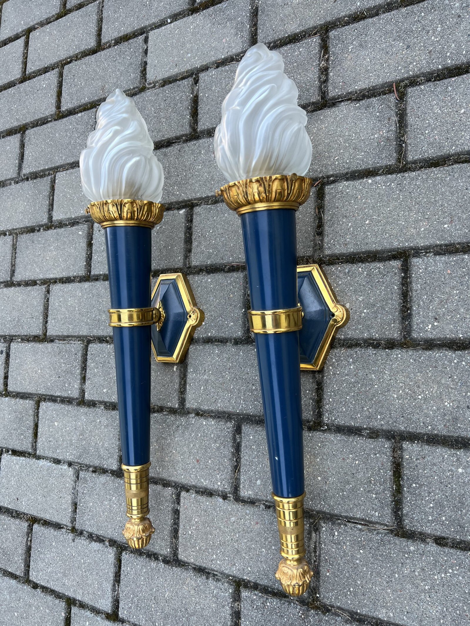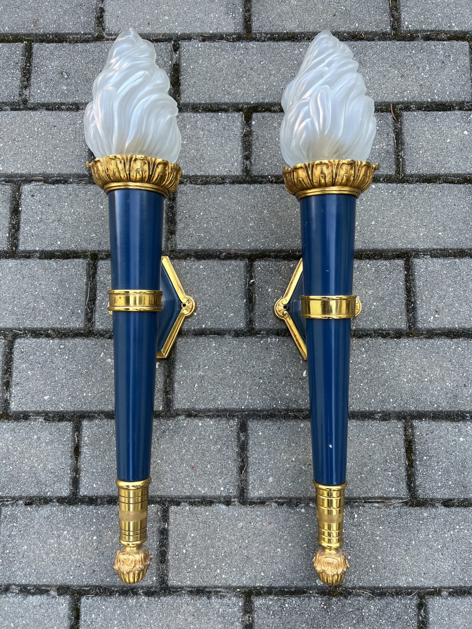 Šviestuvai, bra bronziniai, Ampyro stiliaus stikliniais liepsnelių gaubtais. 2 vnt. Ilgis 60 cm. Kaina po 178