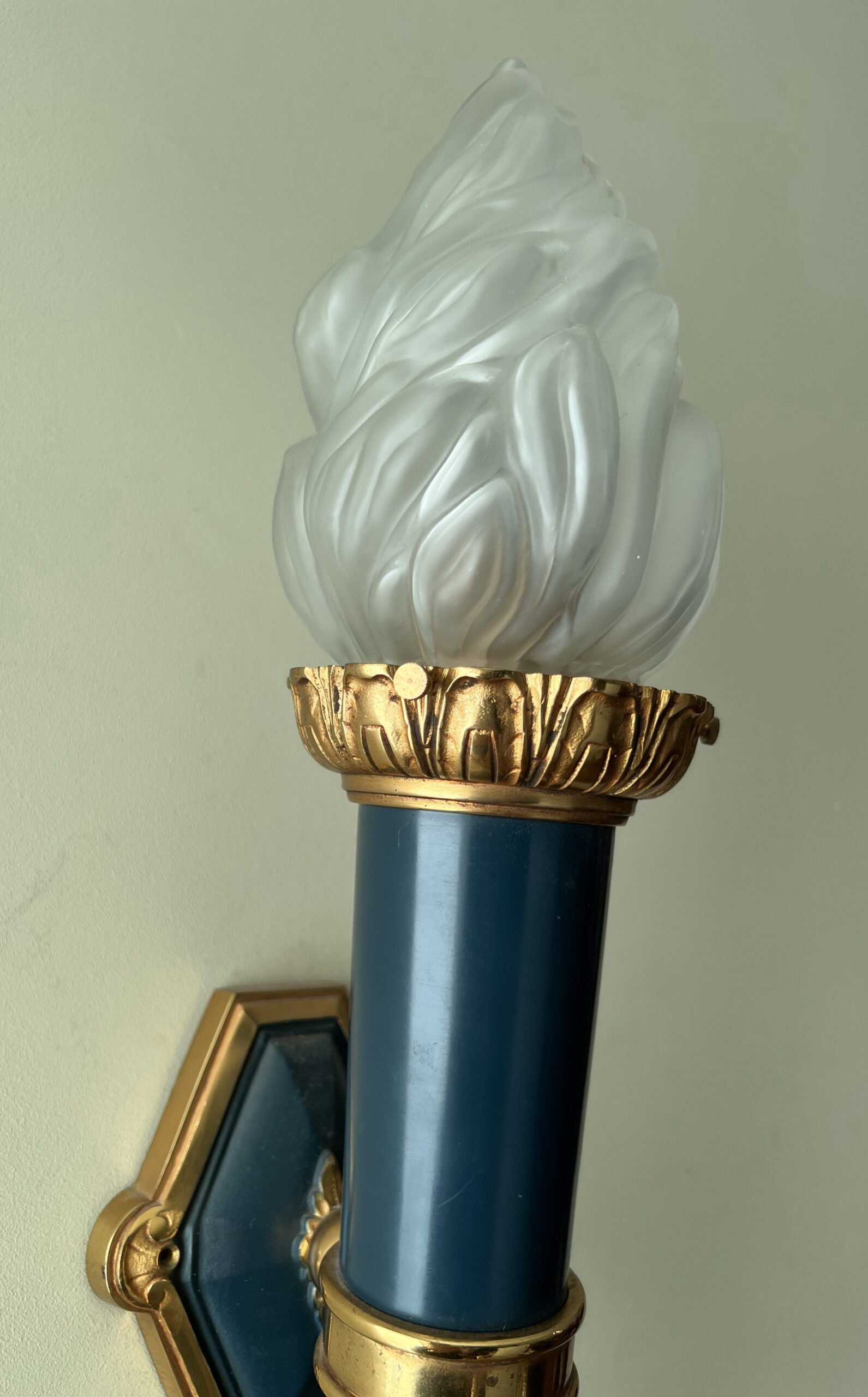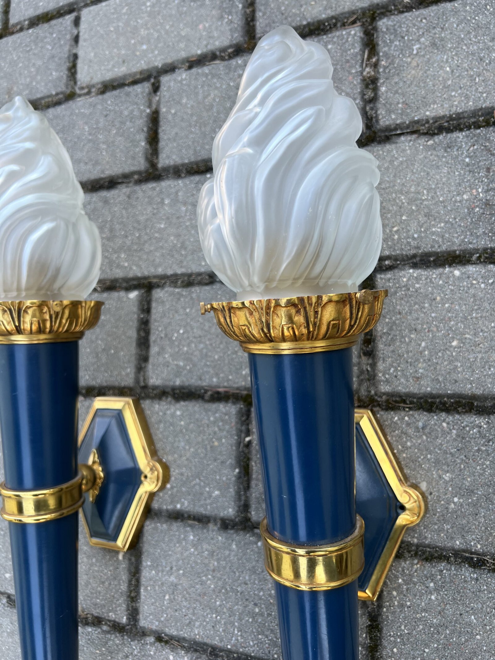 Šviestuvai, bra bronziniai, Ampyro stiliaus stikliniais liepsnelių gaubtais. 2 vnt. Kaina po 178