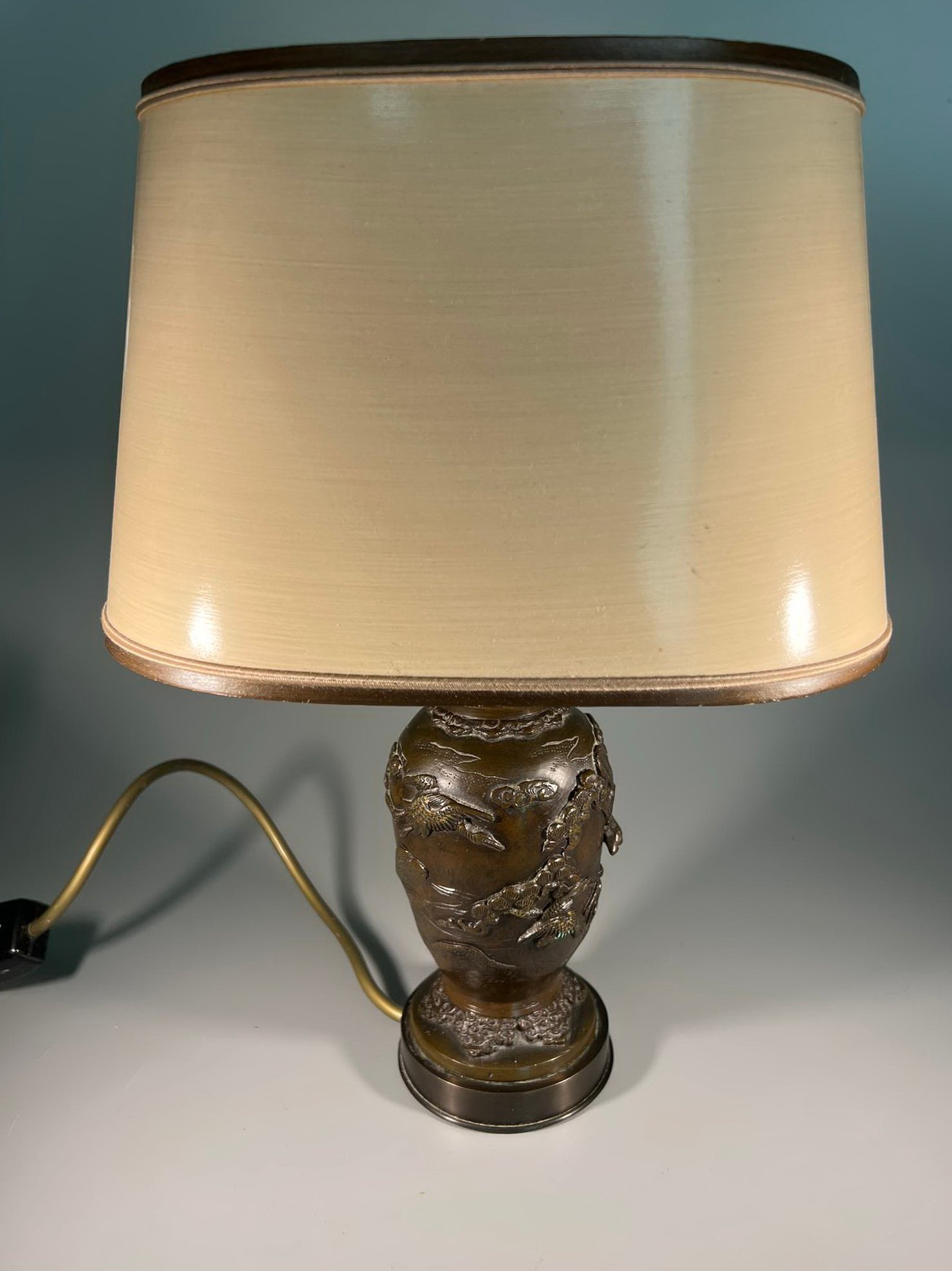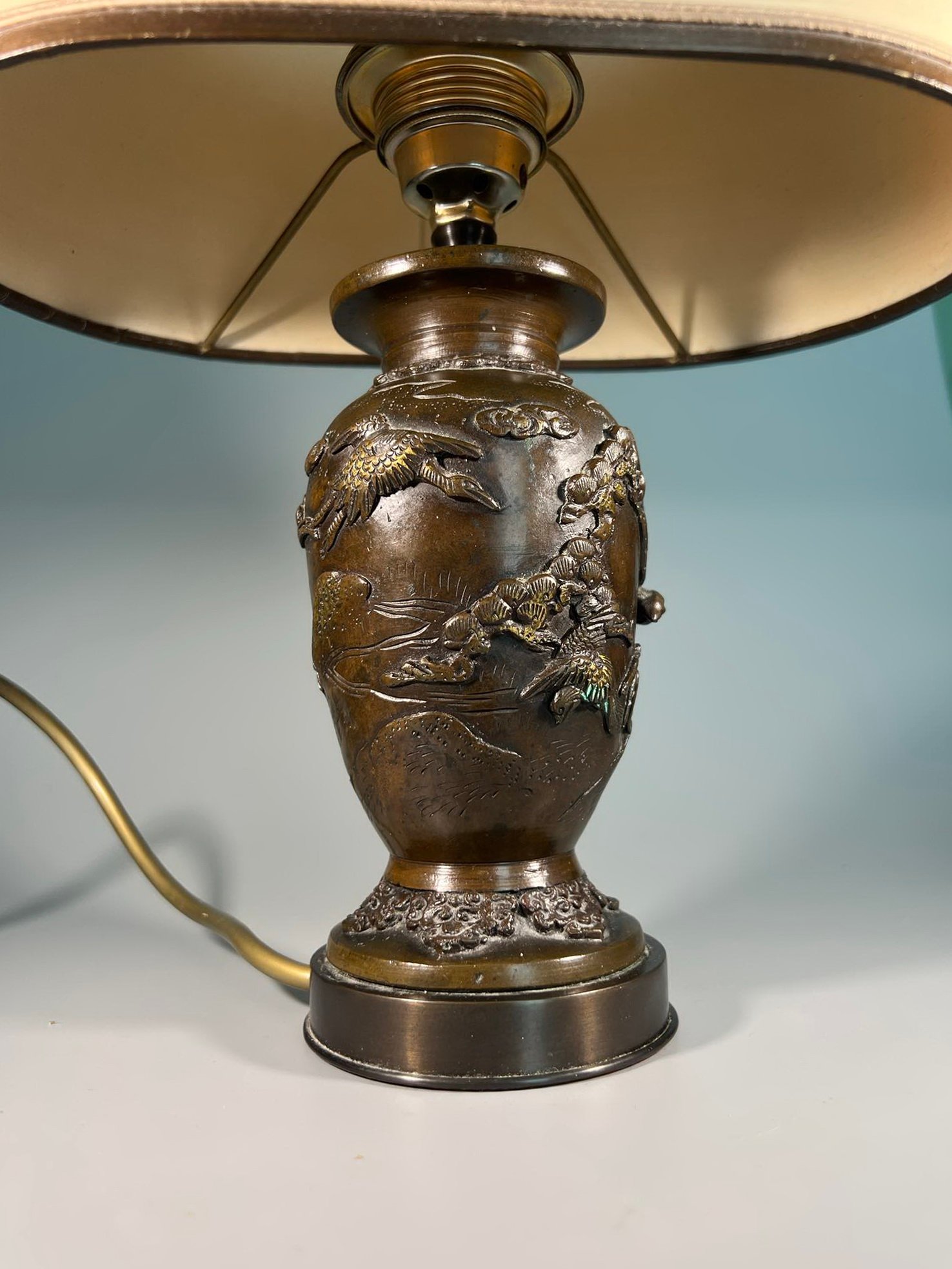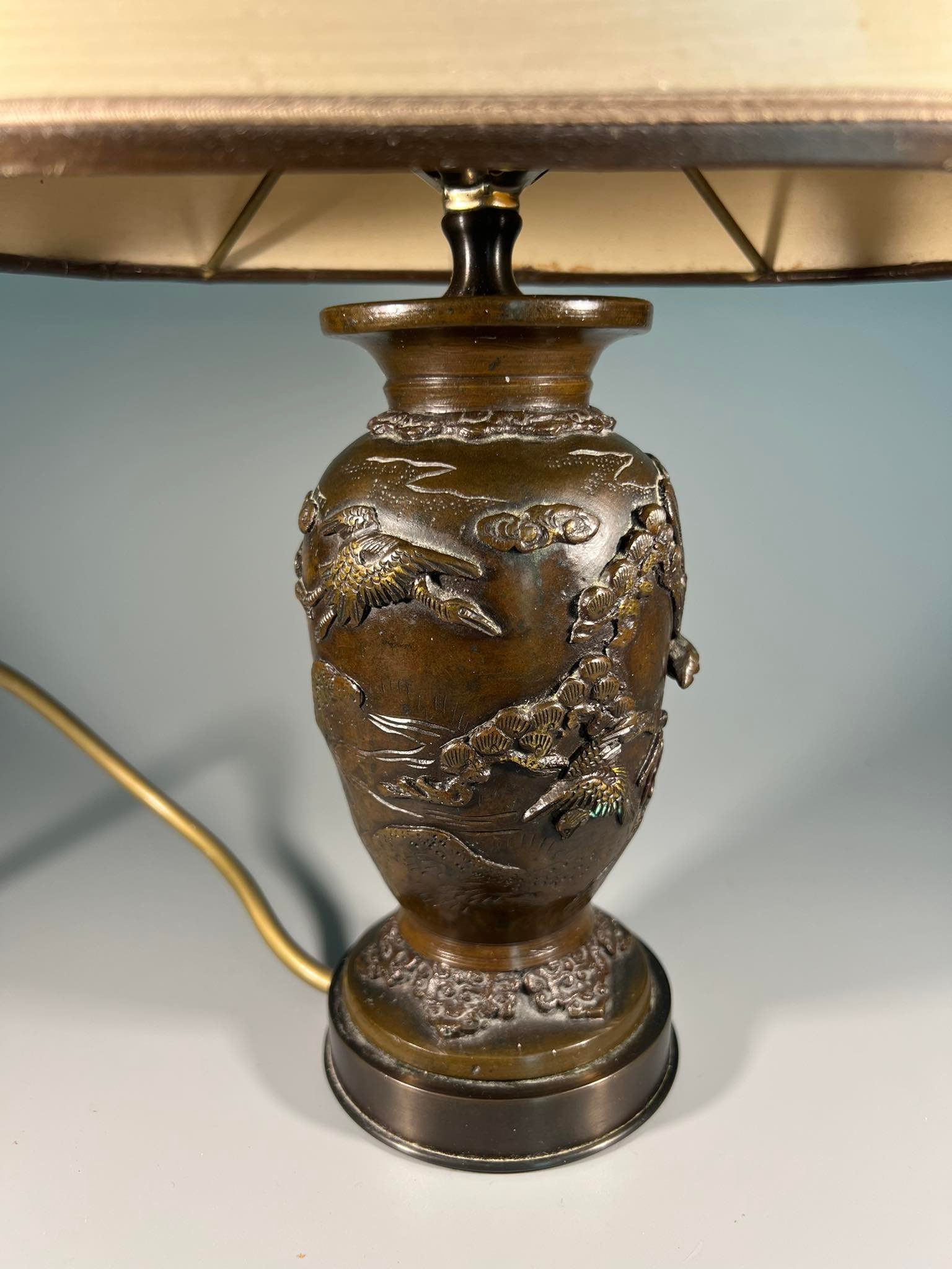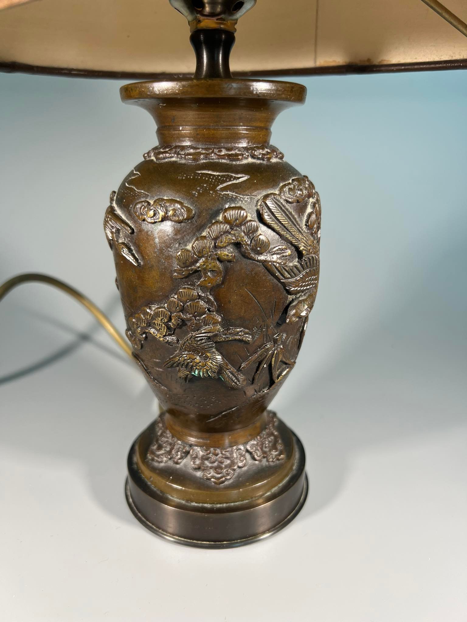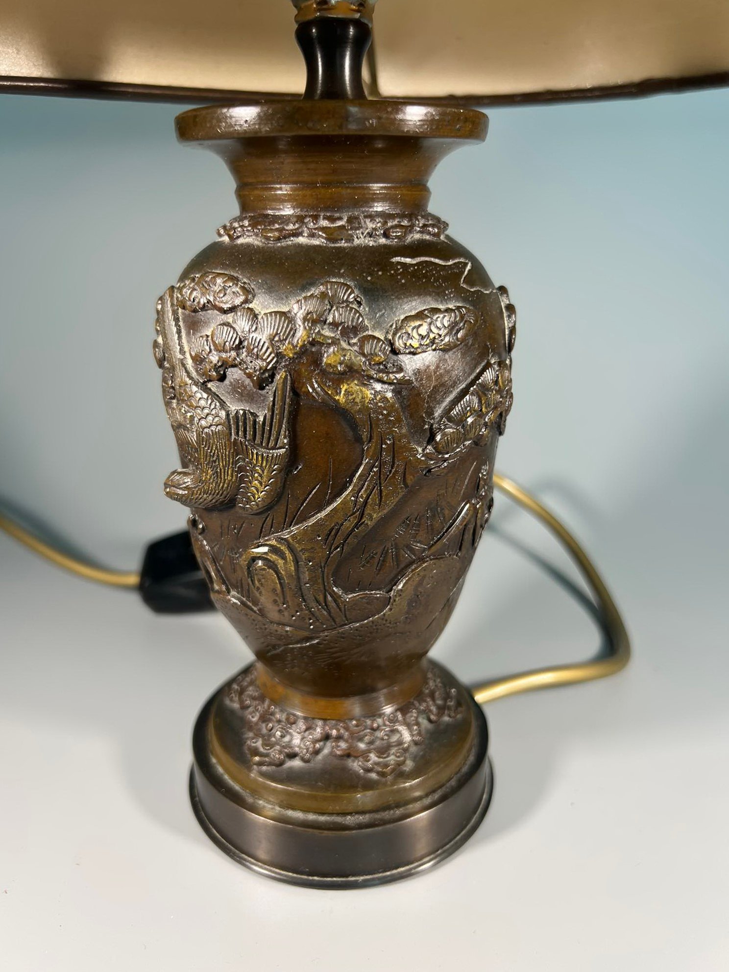 Šviestuvai, naktinės lempos variniais reljefiniais piešiniais, japoniškais motyvais. Veikiantys. 2 vnt. Aukštis 34 cm. Parduodami kartu. Kaina po 88