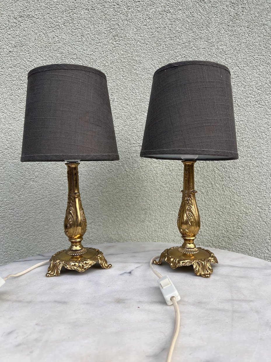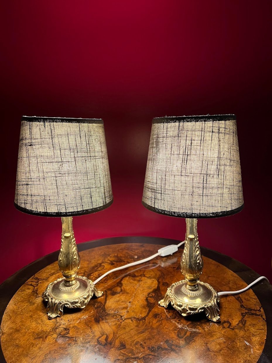 Šviestuvas, naktinė lempa bronziniu pagrindu. Veikiantis. 2 vnt. Aukštis 35 cm. Kaina 98 eur. už abu
