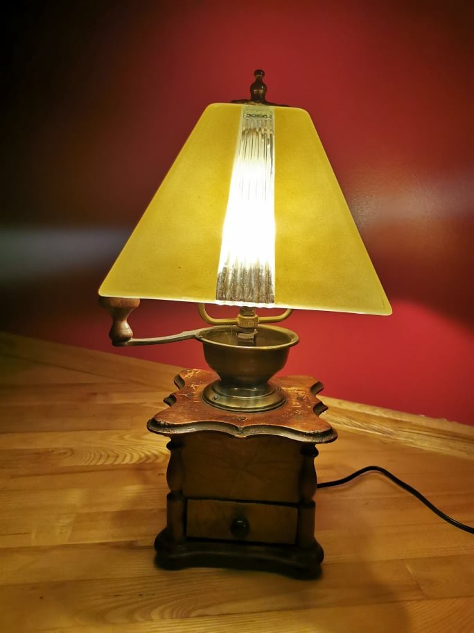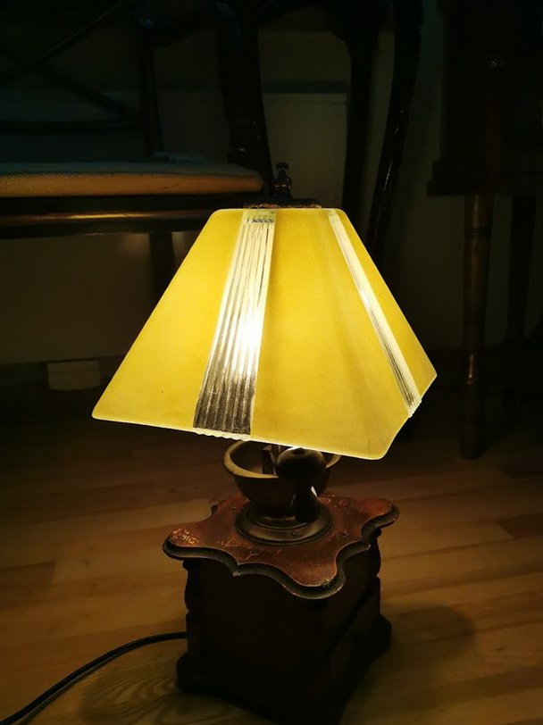 Šviestuvas-antikvarinė kavamalė. Veikiantis. Naktinė lempa. Kaina 107