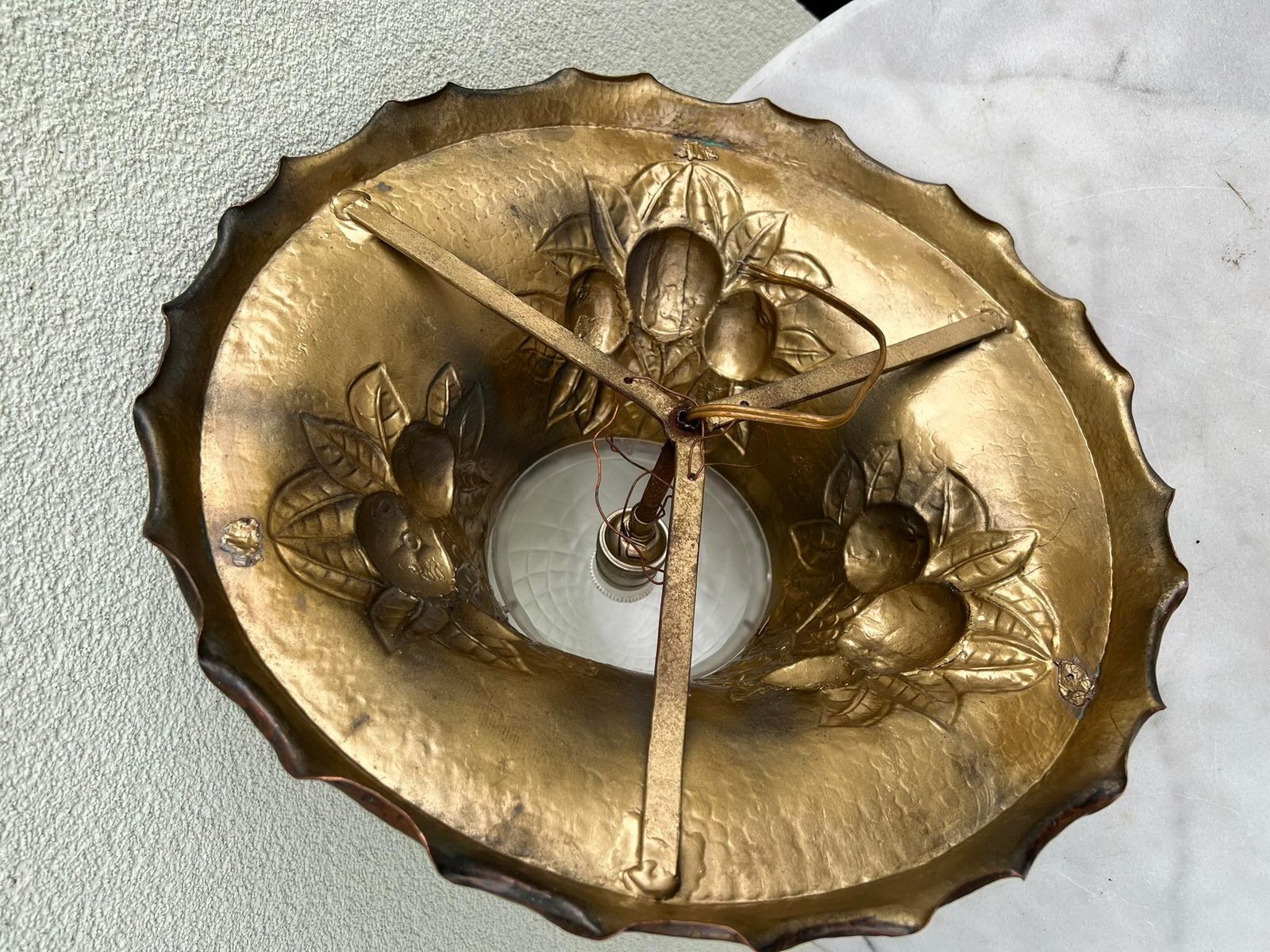 Šviestuvas antikvarinis, Art Nouveau, Secesijos stiliaus. Varis, kaltinis, reljefinias piešiniais, raižytas stiklas. Kaina 193