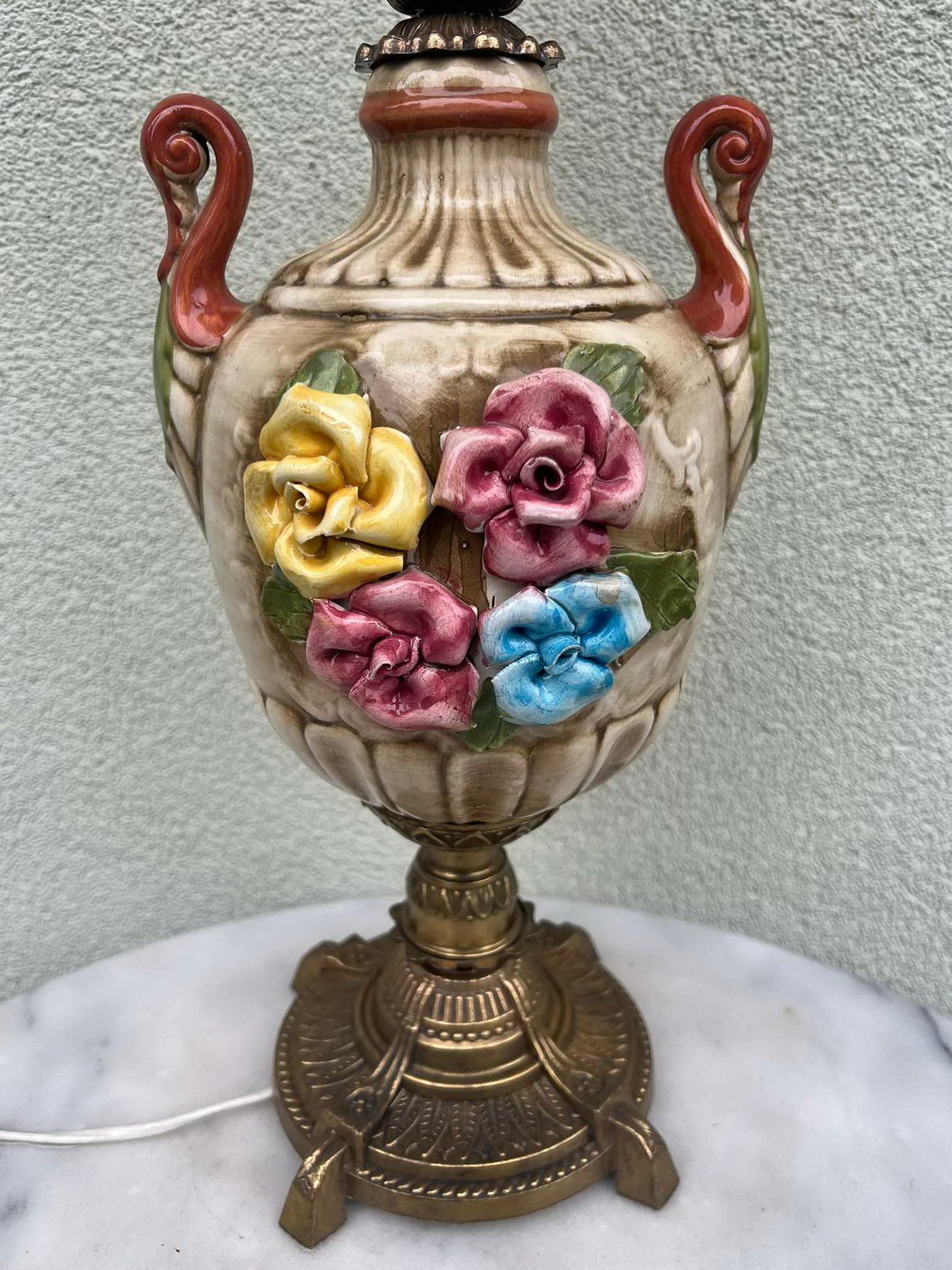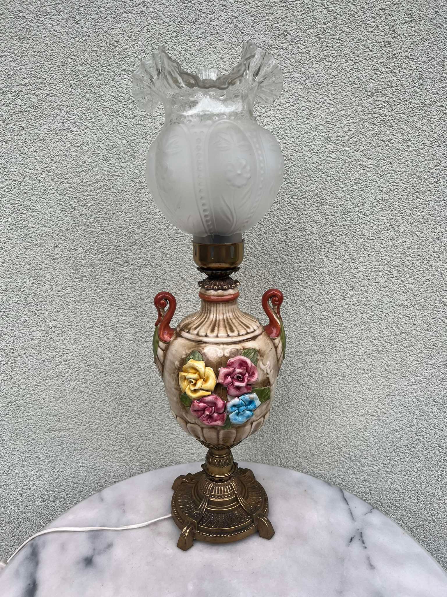 Šviestuvas antikvarinis, elektrifikuotas, pastatomas, stalinis, naktinis veikiantis. Aukštis 63 cm. Kaina 93