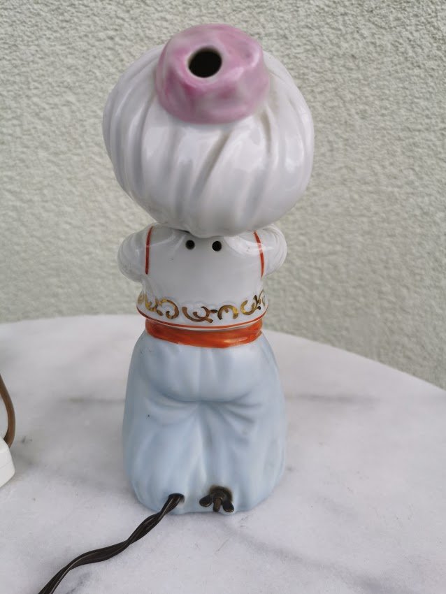 Šviestuvas antikvarinis, porcelianinis. Veikiantis. Aukštis 22 cm. Kaina 73