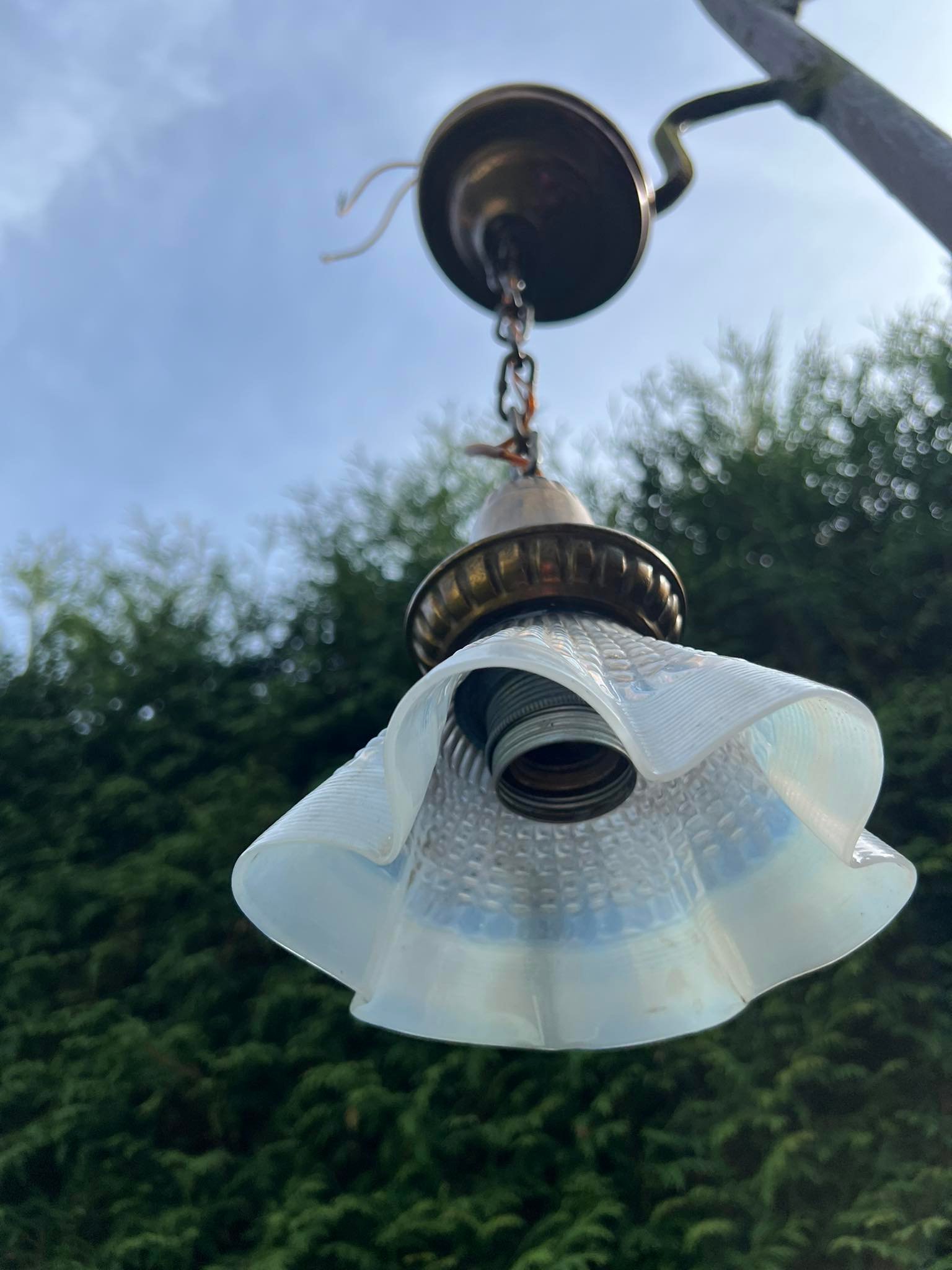 Šviestuvas, lempa antikvarinė, pakabinama, tarpukario laikų. Kaina 93