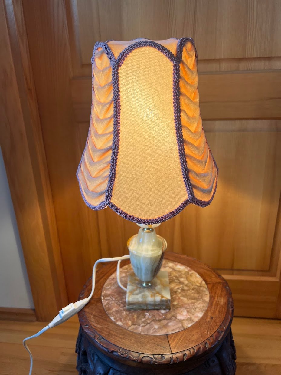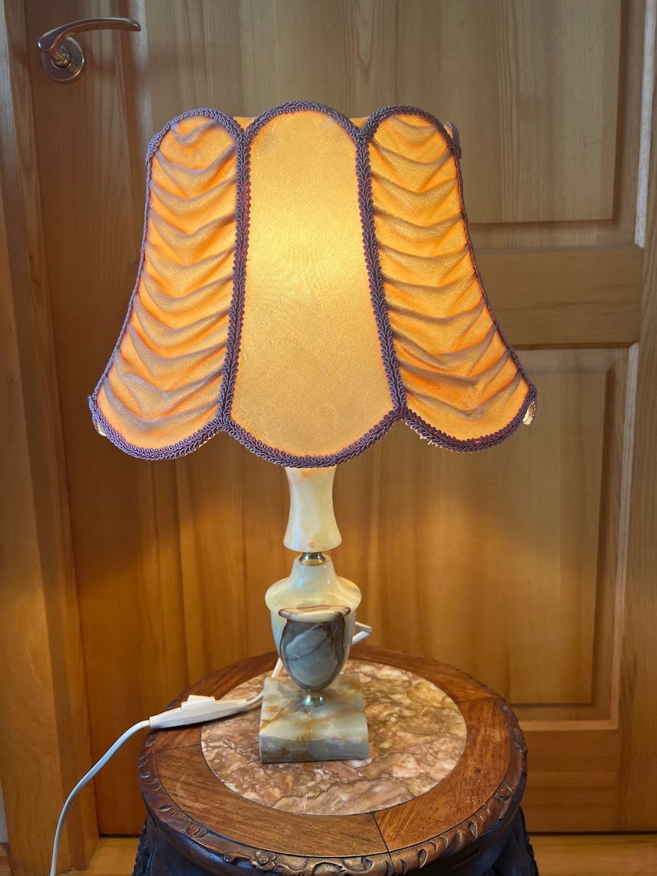 Šviestuvas pastatomas, stalinė lempa, onikso pagrindu, išskirtinio stiliaus. Kaina 48