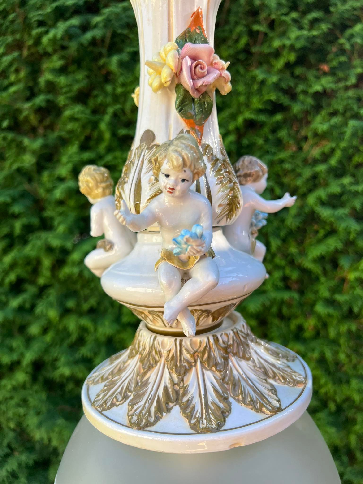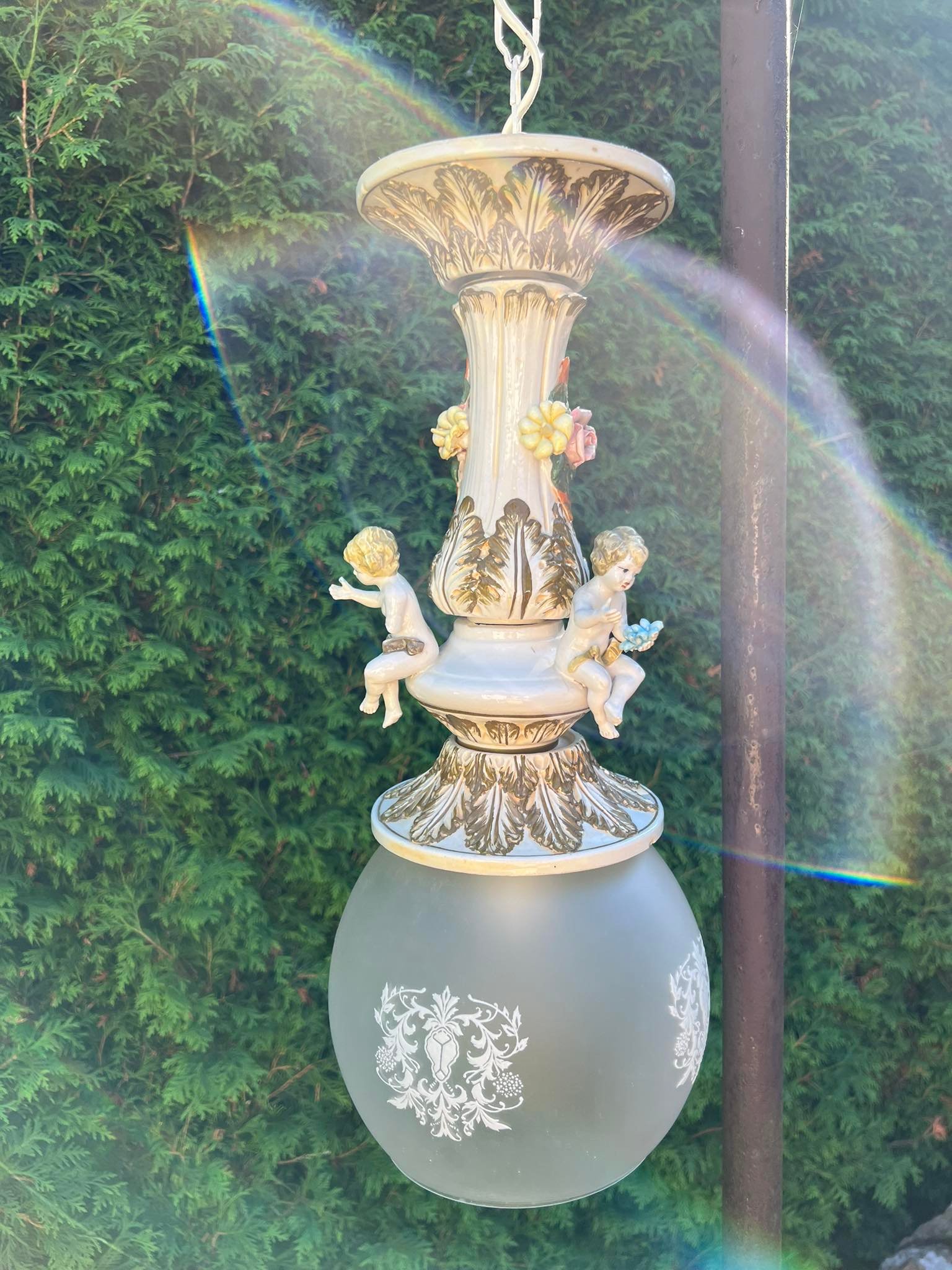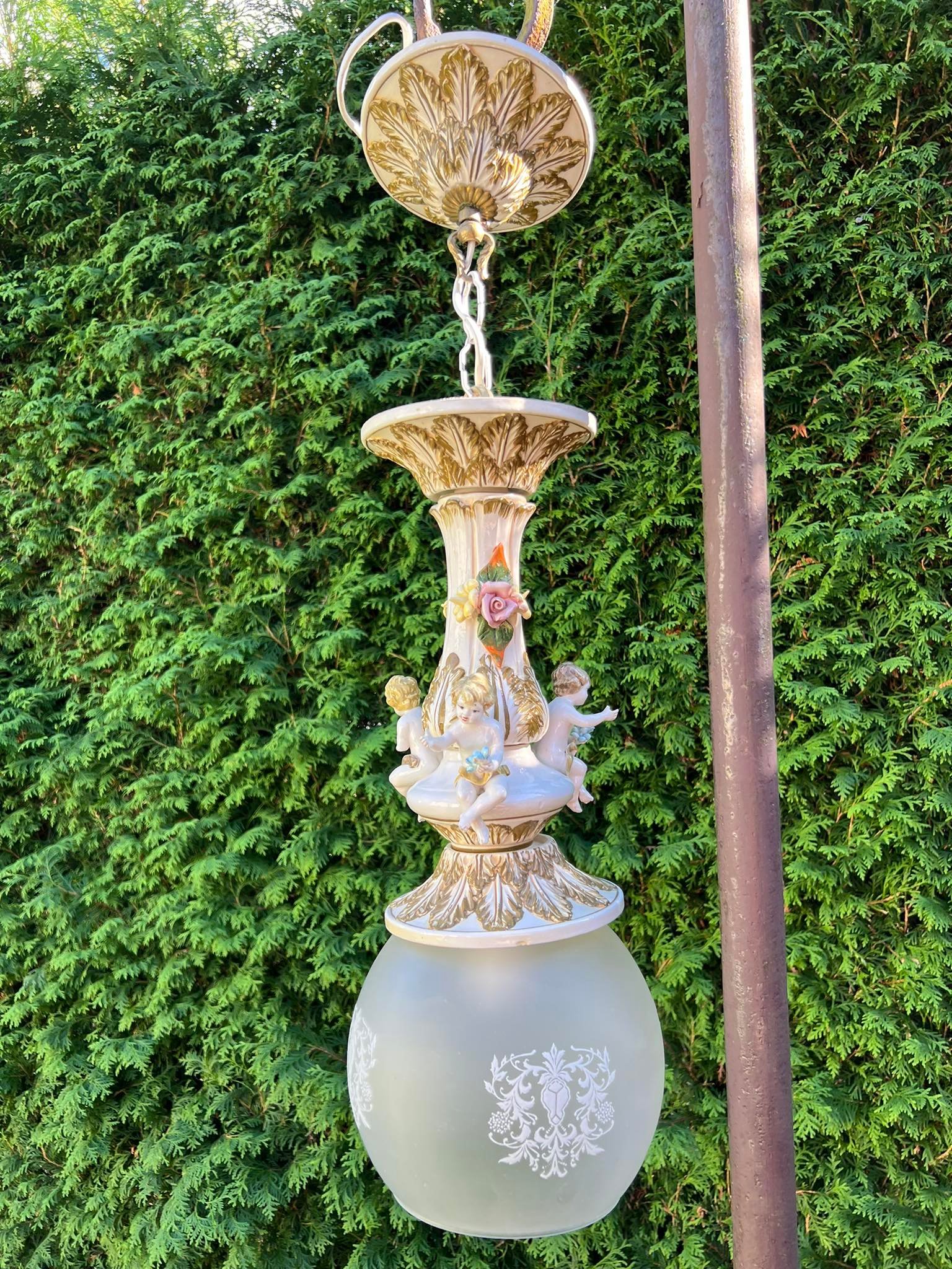 Šviestuvas porcelianinis, puoštas angelais. Italija. Kaina 158
