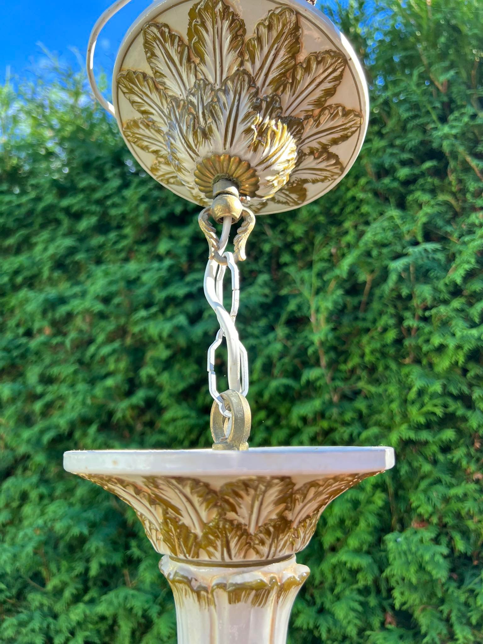 Šviestuvas porcelianinis, puoštas angelais. Italija. Aukštis 65, skersmuo 20 cm. Kaina 158