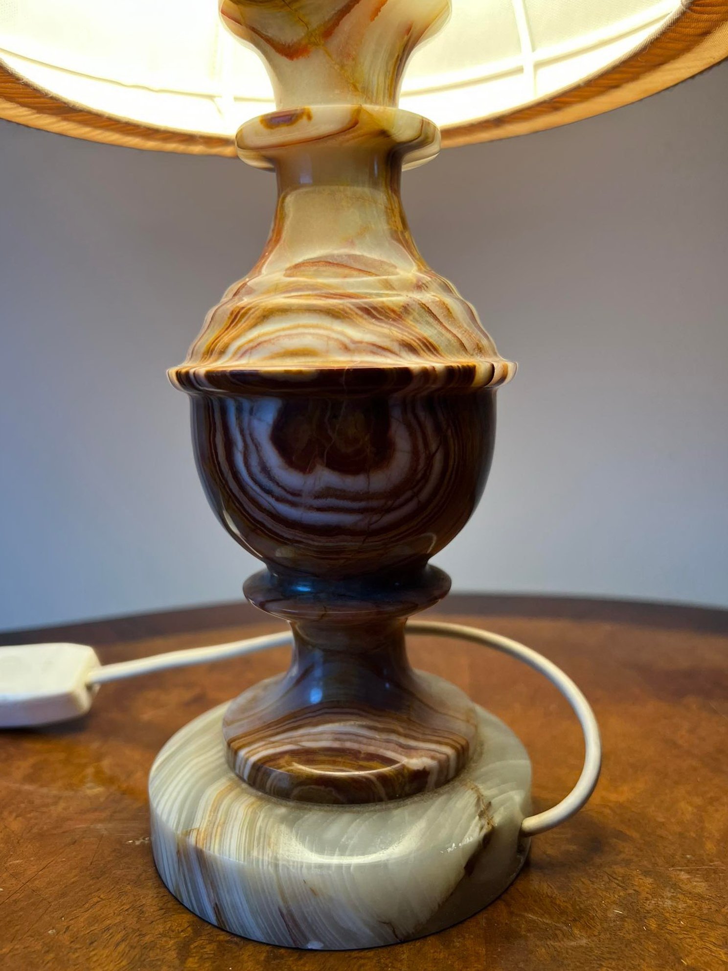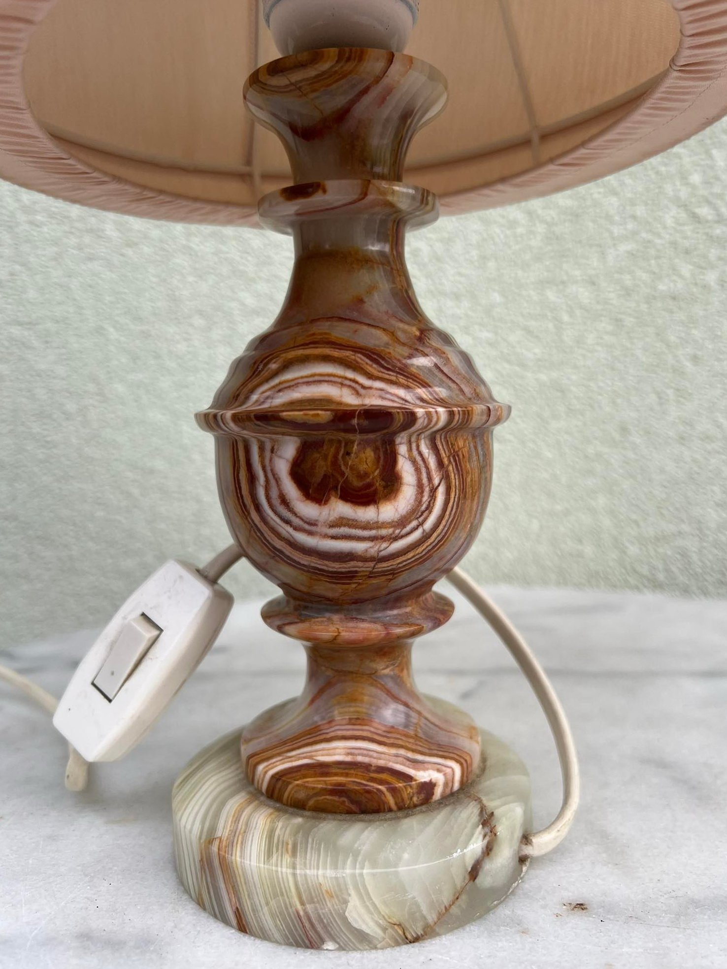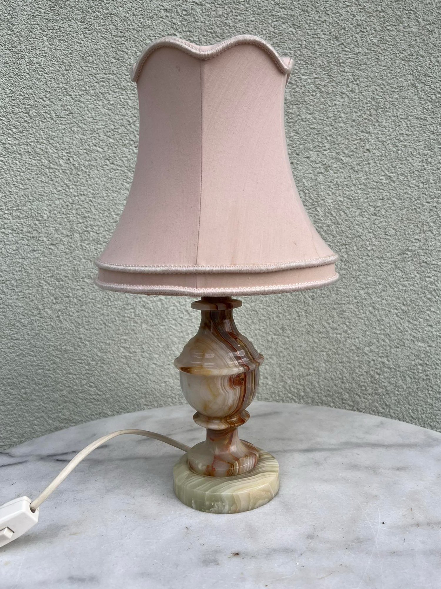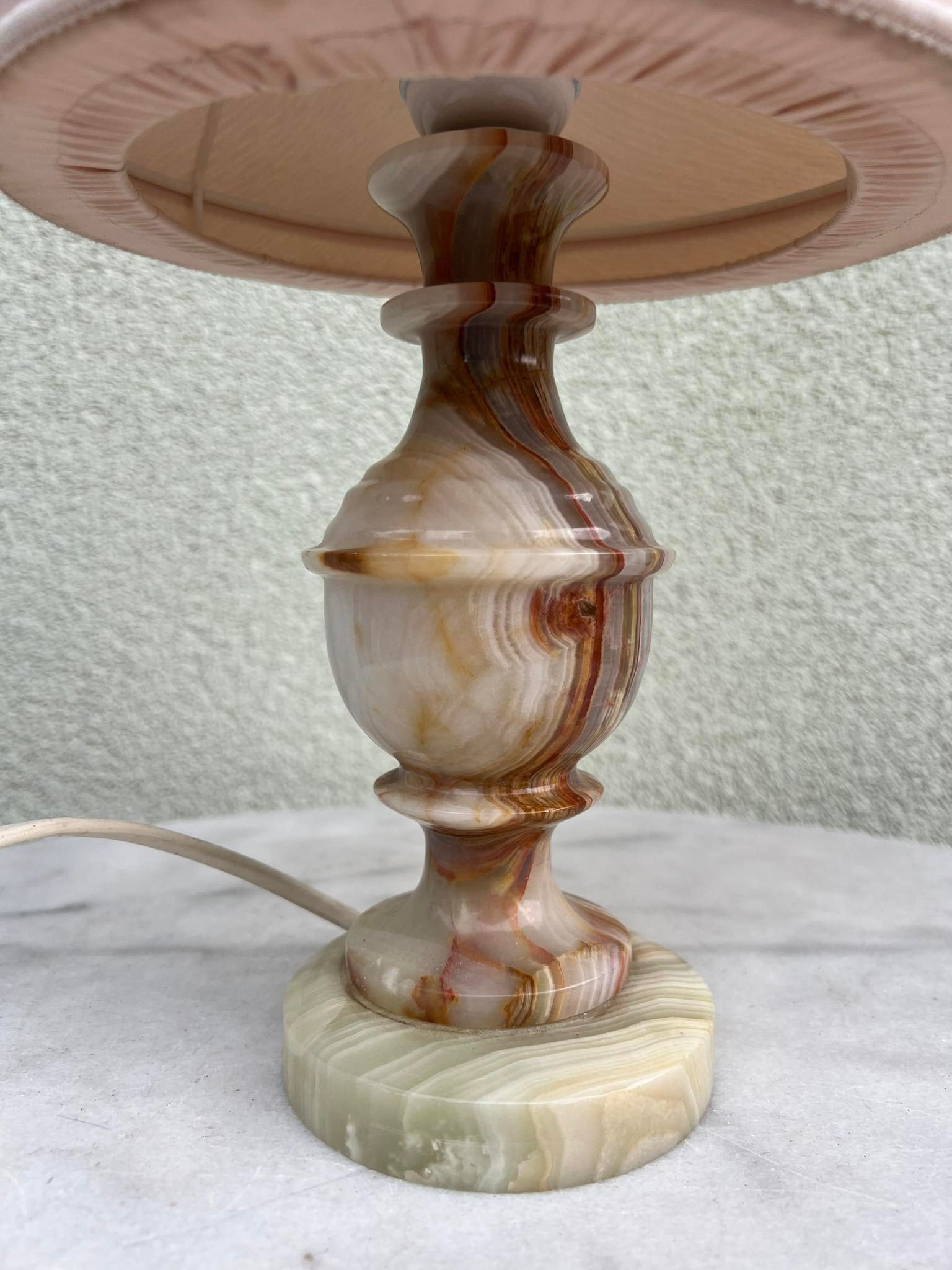 Šviestuvas stalinis, naktinė lempa su oniksu, vintažinė. Aukštis 36 cm. Kaina 43
