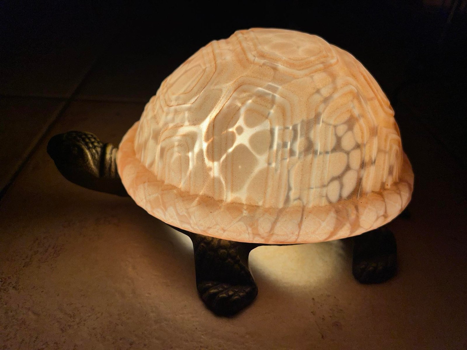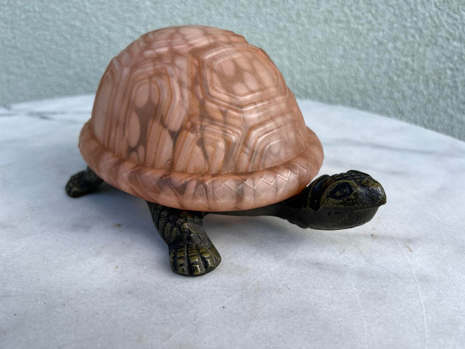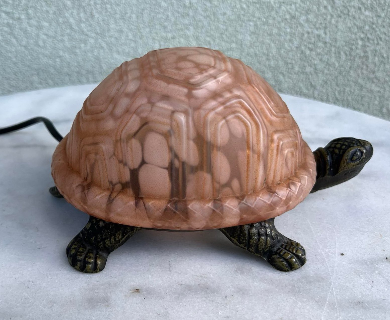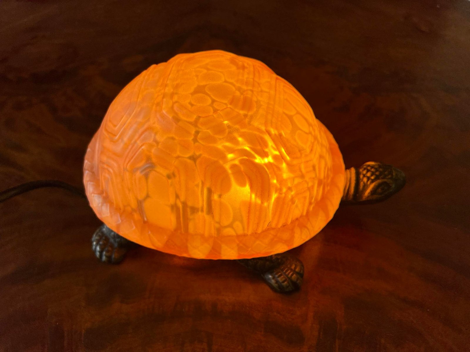 Šviestuvas stalinis, naktinė lempa Vėžlys. Bronza, stiklas. Veikiantis. Kaina 78