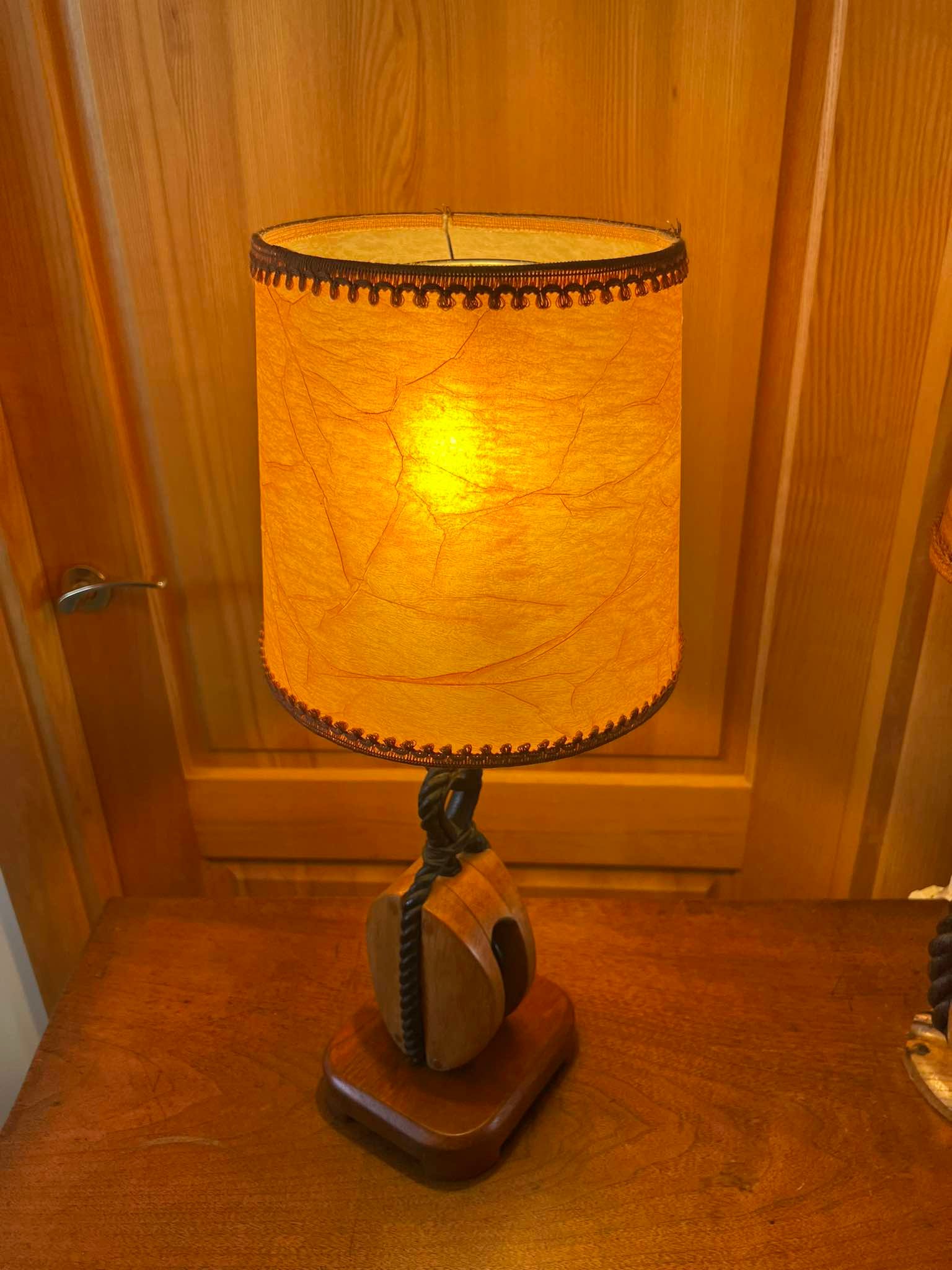 Šviestuvas, toršeras, stalinė, naktinė lempa jūrine tematika, pagaminta iš originalių burlaivio dalių. 2 vnt. Kaina po 138