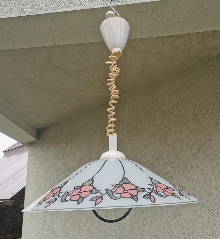 Šviestuvas vintažinis, stikliniu gaubtu, reguliuojamo aukščio, skandinaviškas. Kaina 53