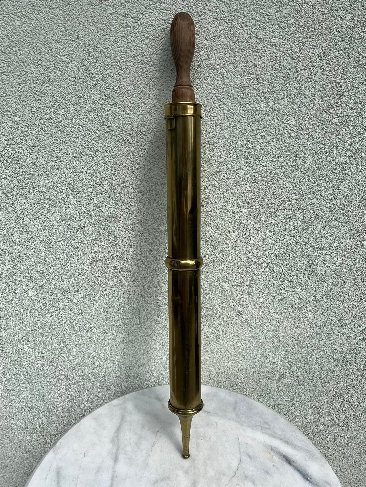 Švirkštas antikvarinis dešroms kimšti, didelis, žalvarinis. Veikiantis. Ilgis 81, skersmuo 6 cm. Kaina 67