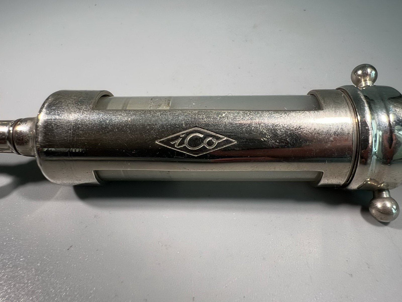 Švirkštas chirurginis, antikvarinis, ICo, pagamintas "The Kny-Scheerer Corporation". JAV. XX a. pr. Kaina 48