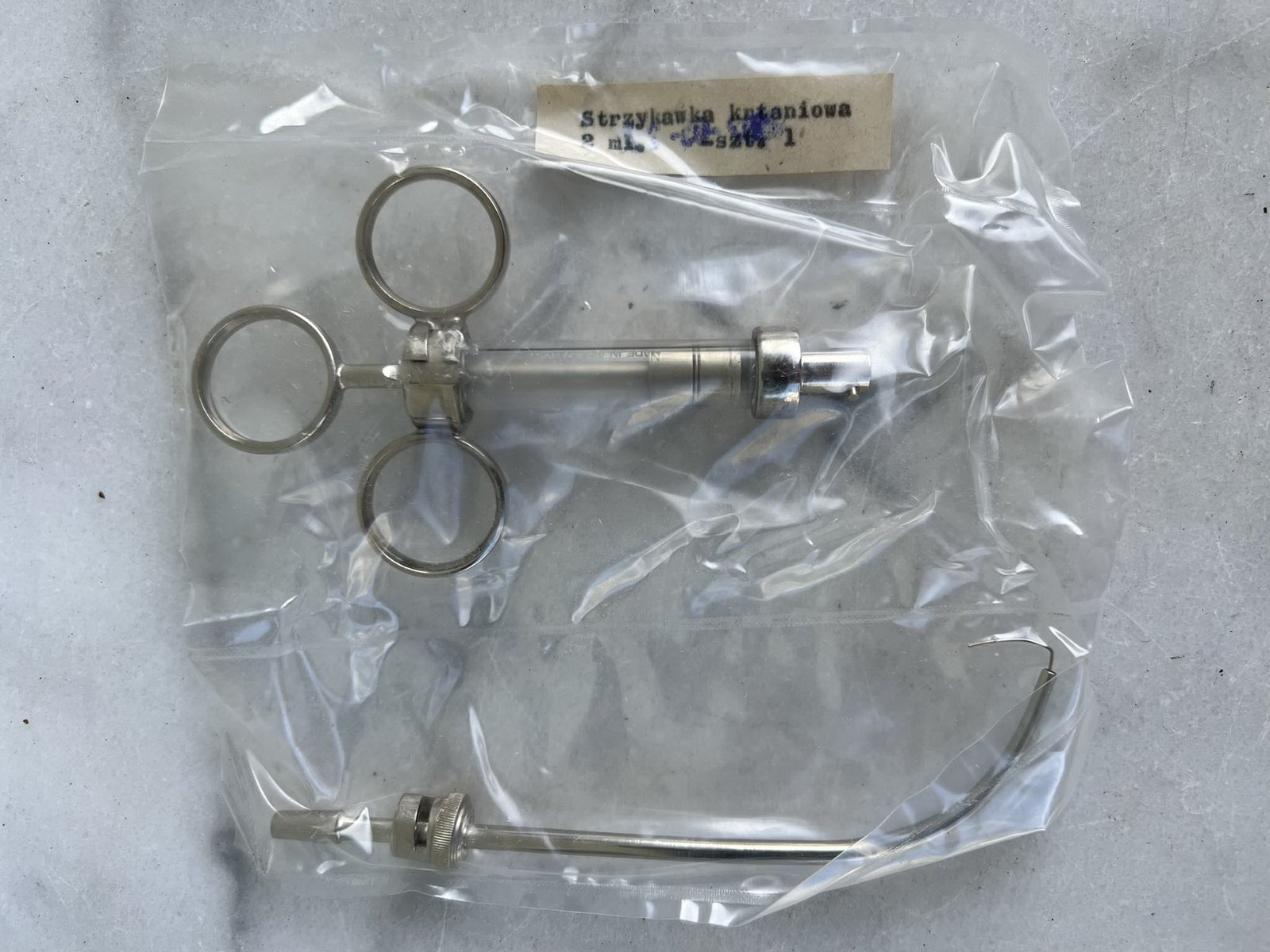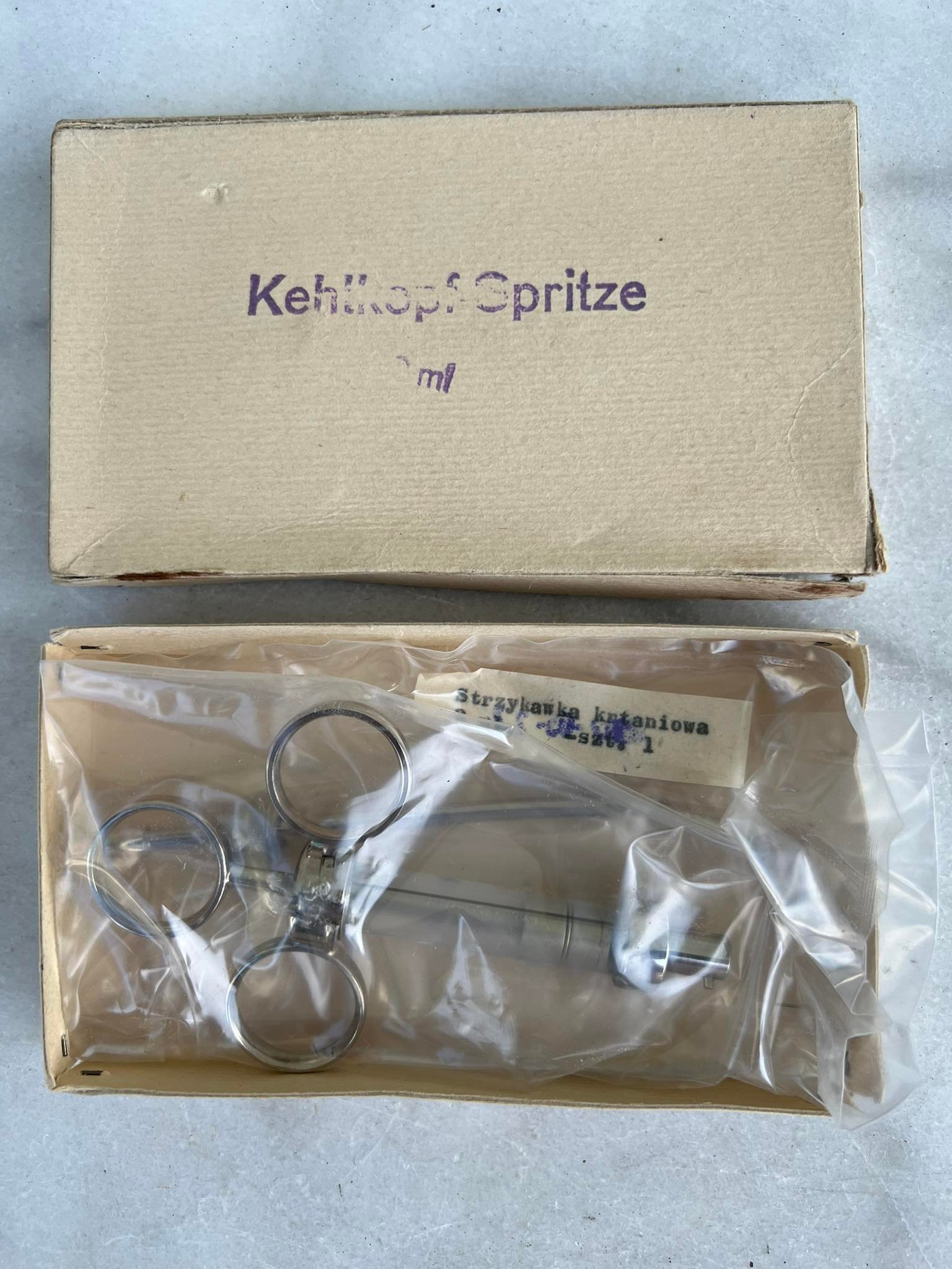 Švirkštas gerklų, vintažinis, 2 ml. Nenaudotas. Kaina 18