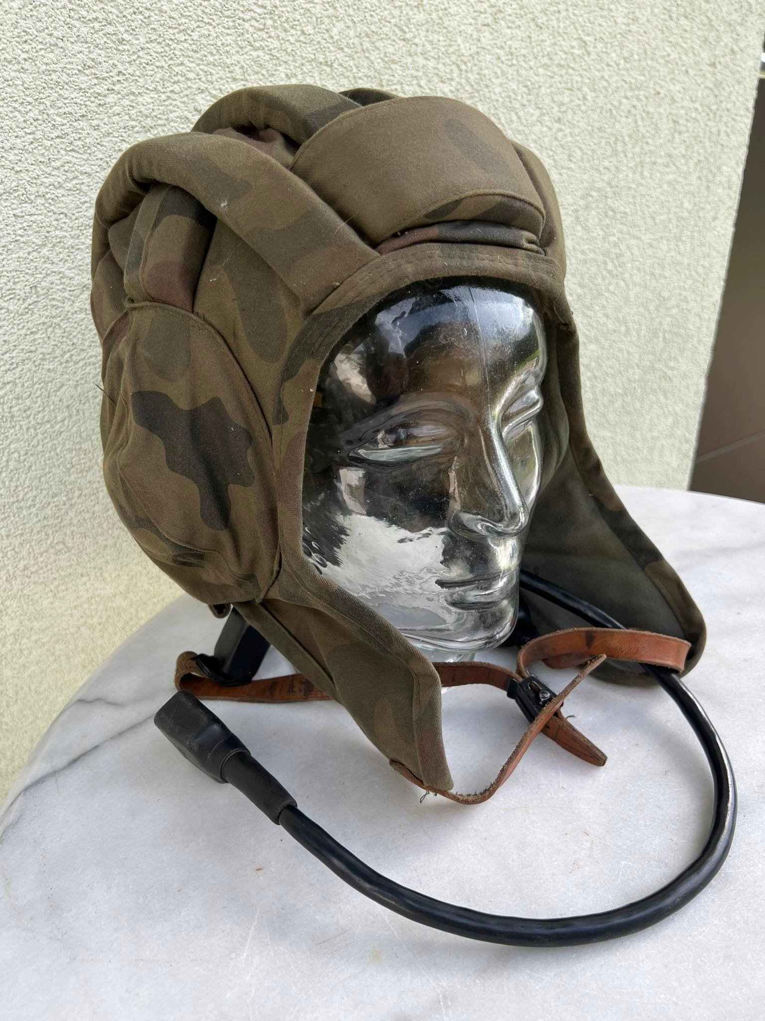 Tankisto kepurė, šalmas, kamufliažinis, originalus. Žieminis, su kailiu. Sovietinis, tarybinių laikų. Dydis 57-58. Kaina 88