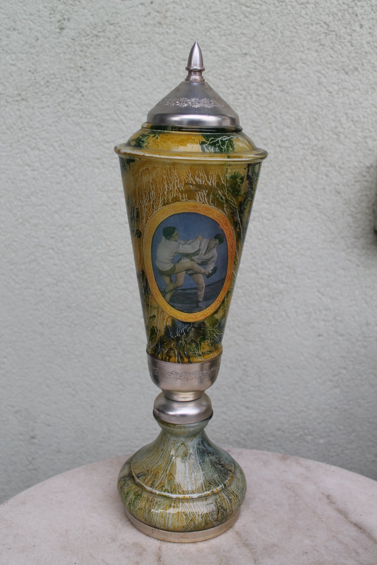 Tarybine sportine taure. Stikline, bukle be priekaistu. Aukstis 45 cm. Kaina 42