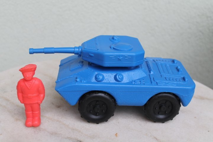 Tarybinis tankas. Plastmasinis, jureivis-dovanu. Tanko ilgis 20, aukstis 11 cm. Kaina 22 Eur.