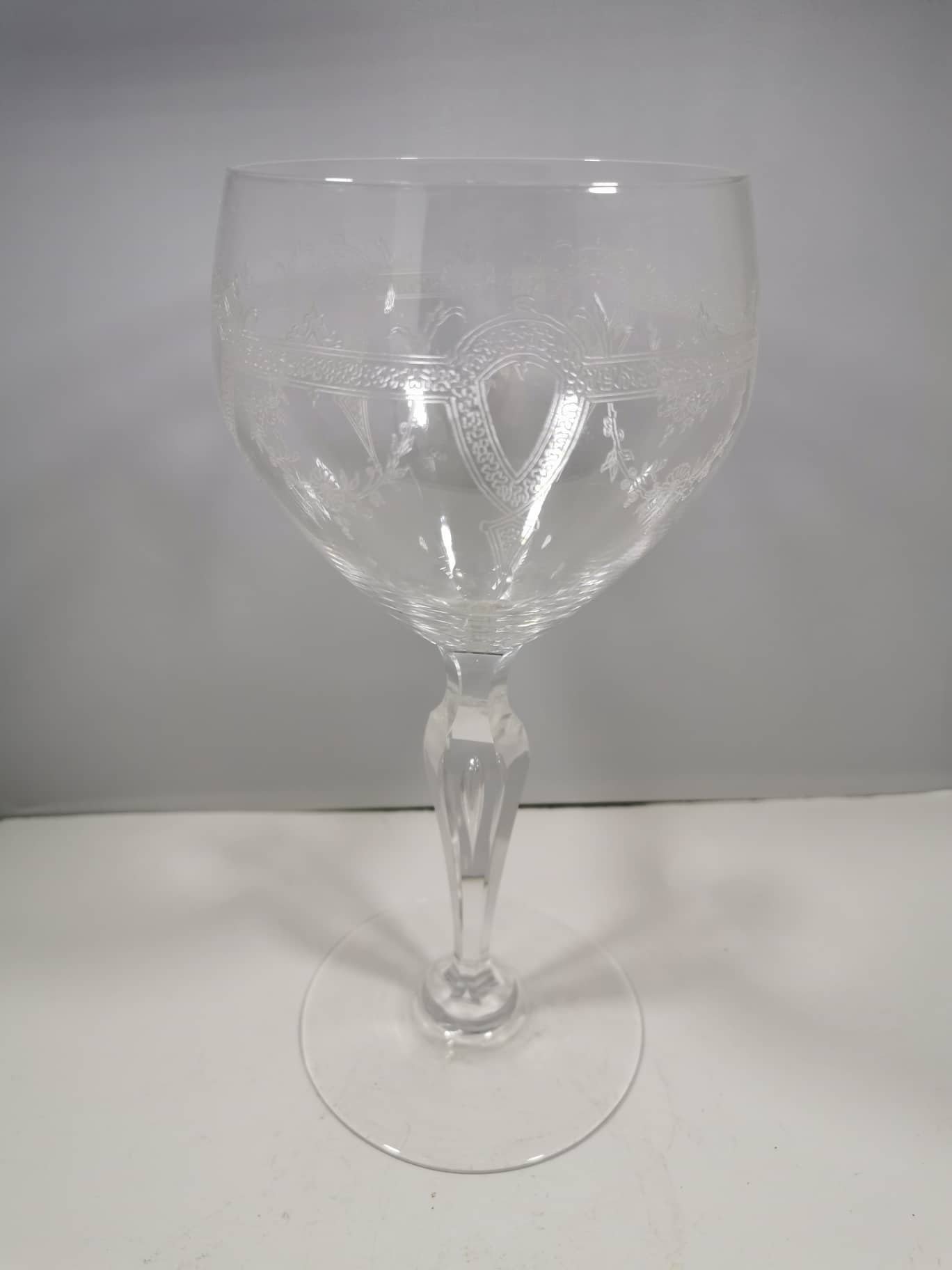 Taurė raižyta, vintažinė. Aukštis 25, skersmuo 10, pagrindo skersmuo 11 cm. Kaina 18