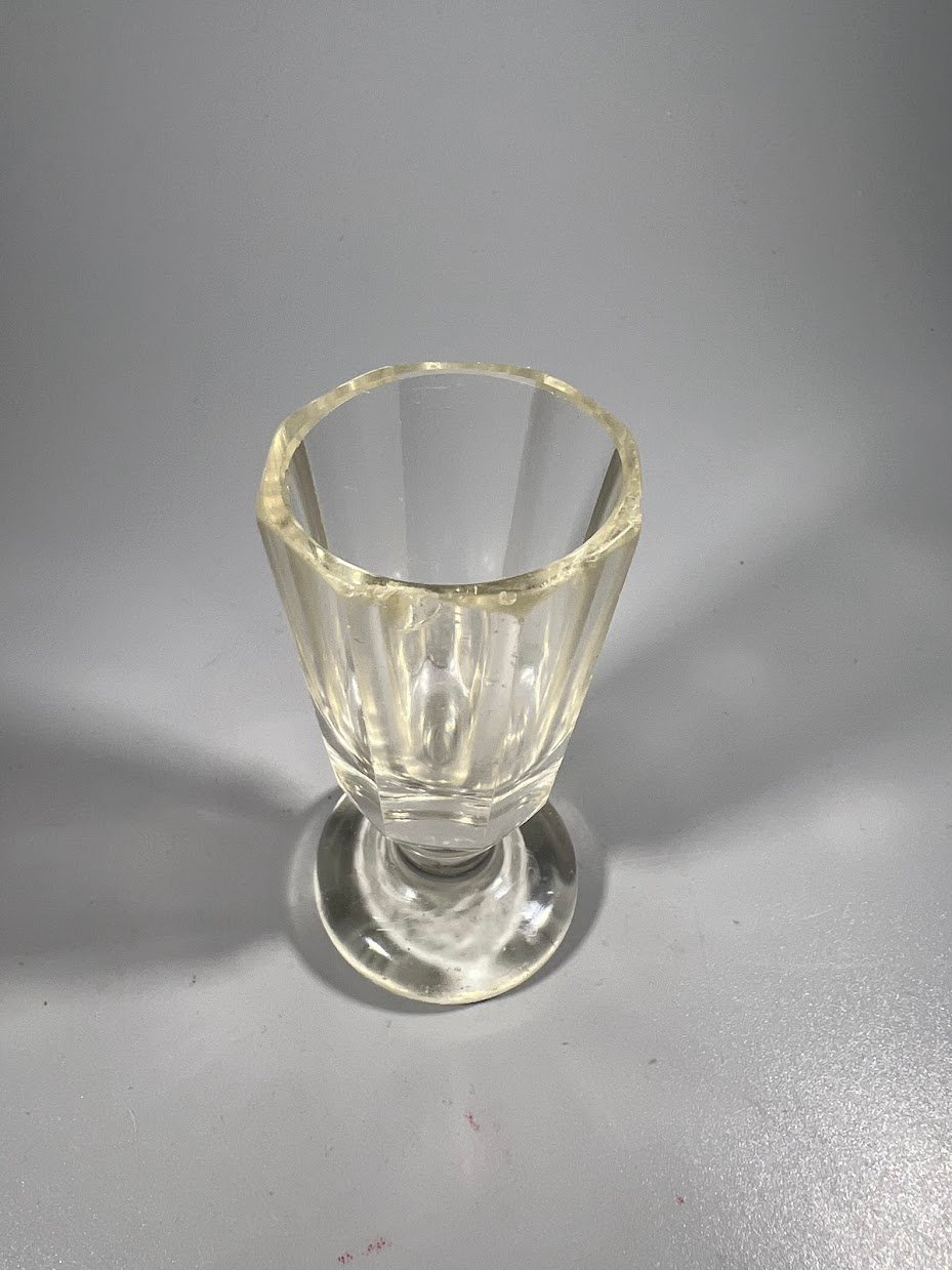Taurelė, stikliukas su kojele, lafitnik, antikvarinis. Talpa 20 ml. Aukštis 8,4 cm. Nedidelis nuskilimas, naudoti visiškai tinkama. Kaina 29