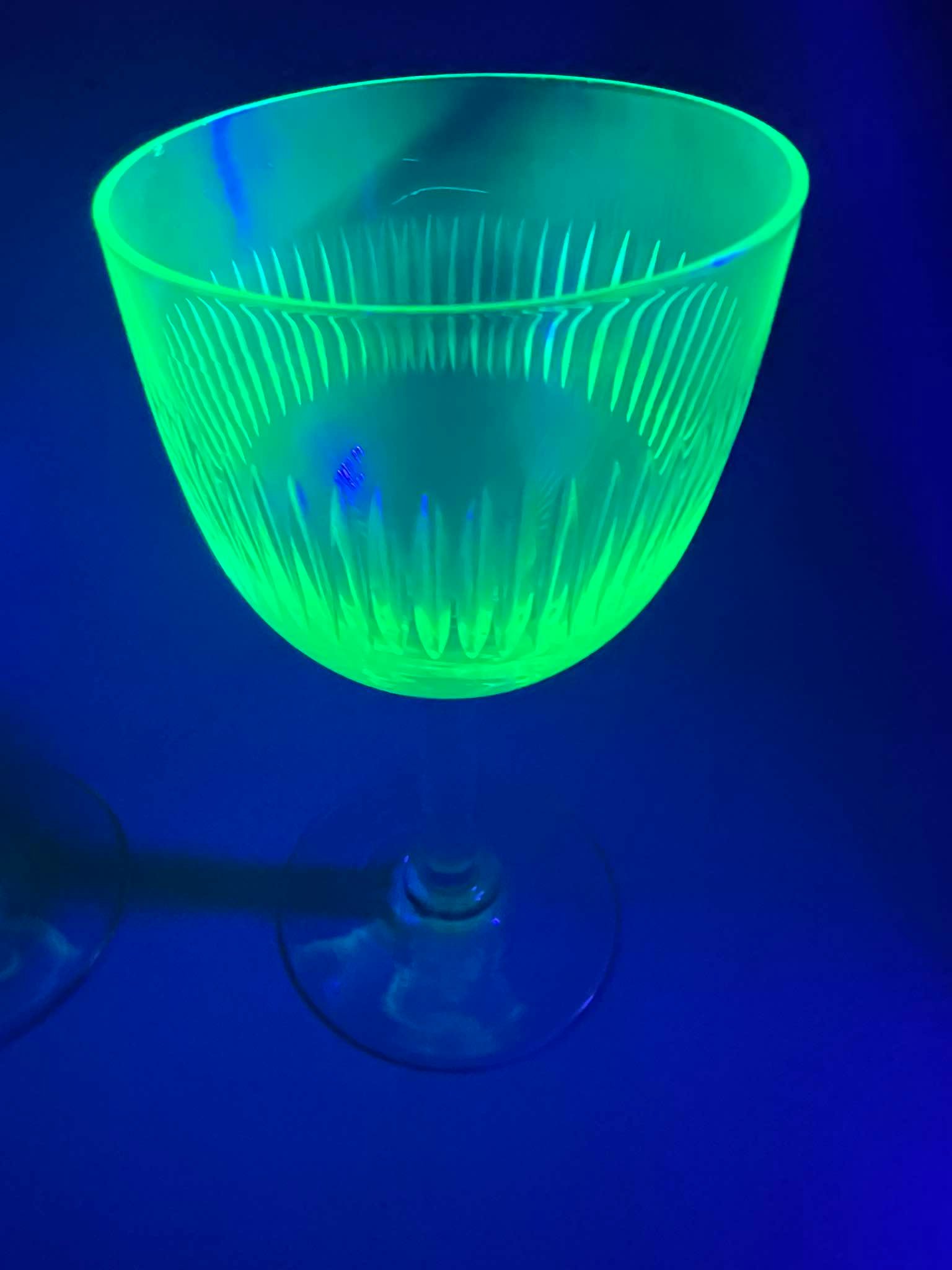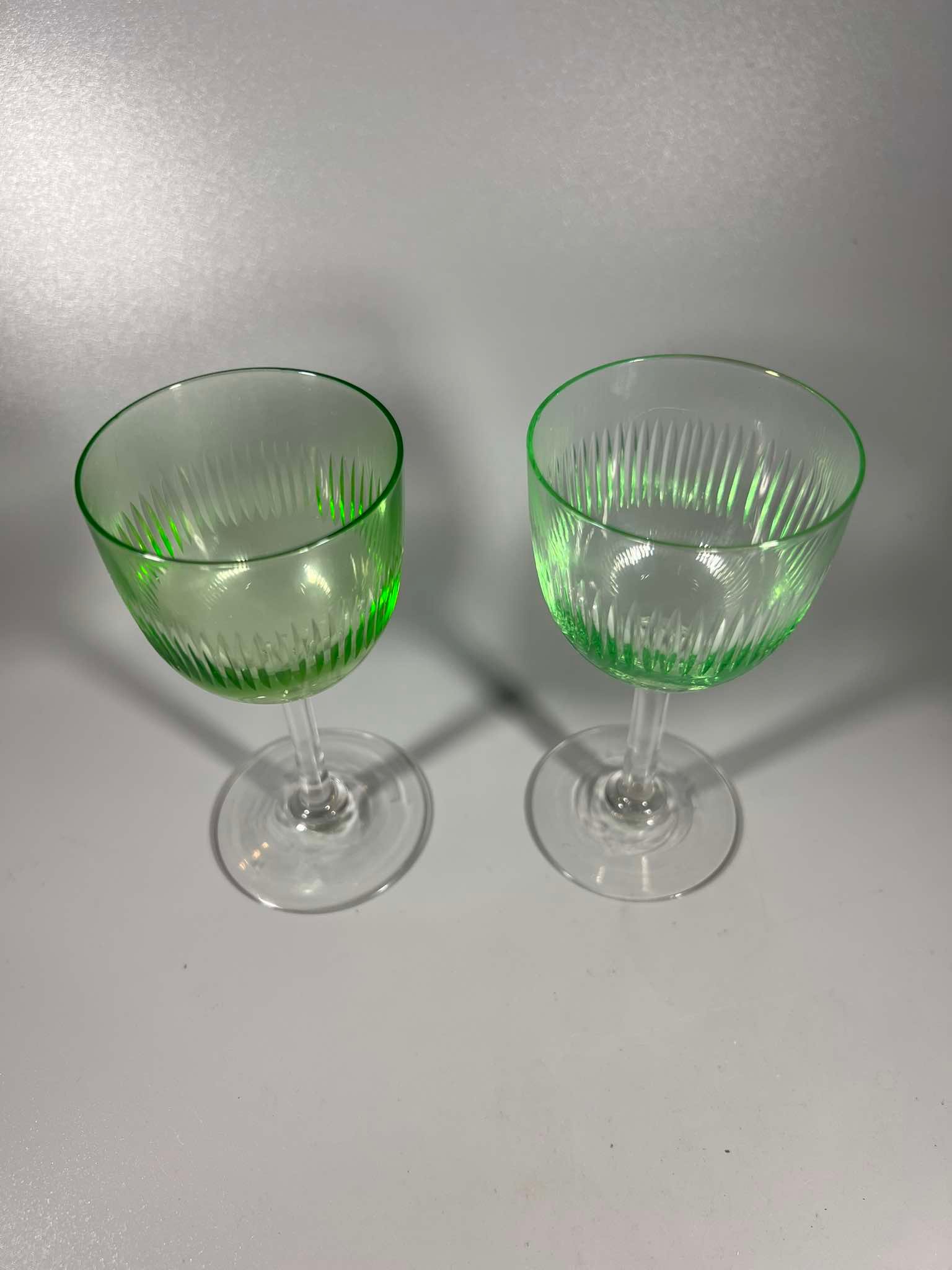 Taurelė, taurė urano stiklo, ant kojelės, vintažinė, prancūziška. Talpa 80 ml. 2 vnt. Kaina po 26