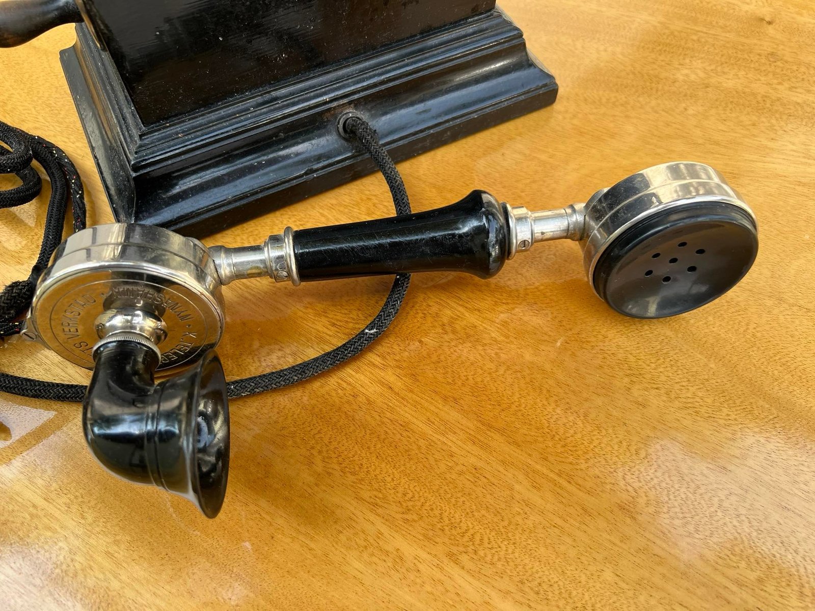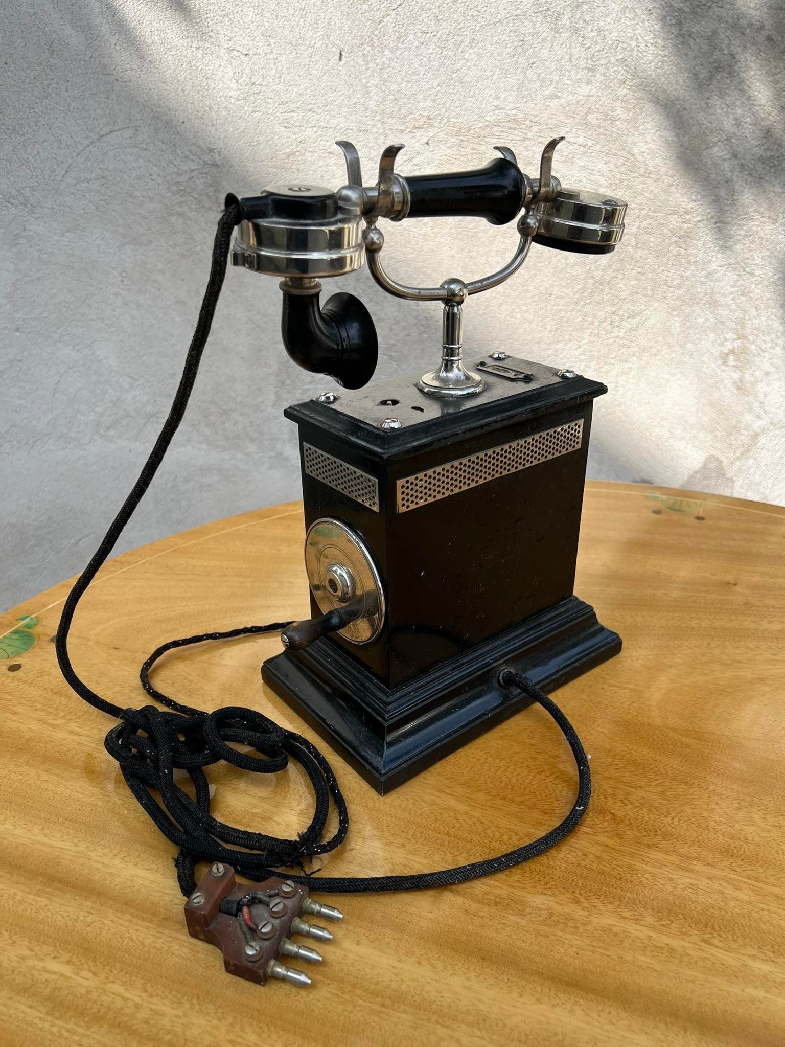 Telefonas antikvarinis, stalinis TELEGRAFVERKETS VERKSTAD NYNASHAMN. Viskas originalu. 1896 m. Kaina 258