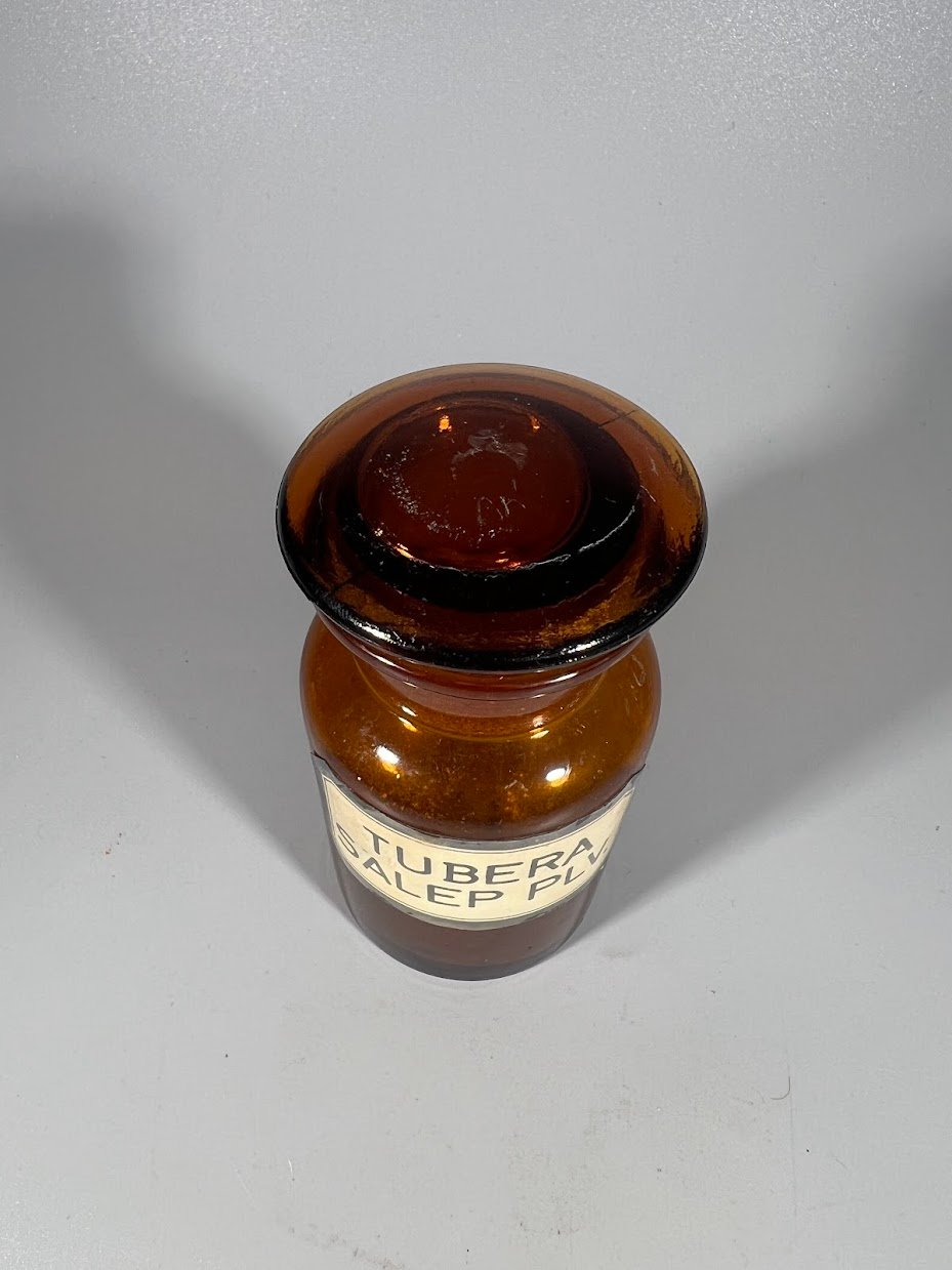 Vaistų, vaistinės buteliukas antikvarinis cilindro formos, gintaro spalvos rudo stiklo, vokiškas. Kaina 23