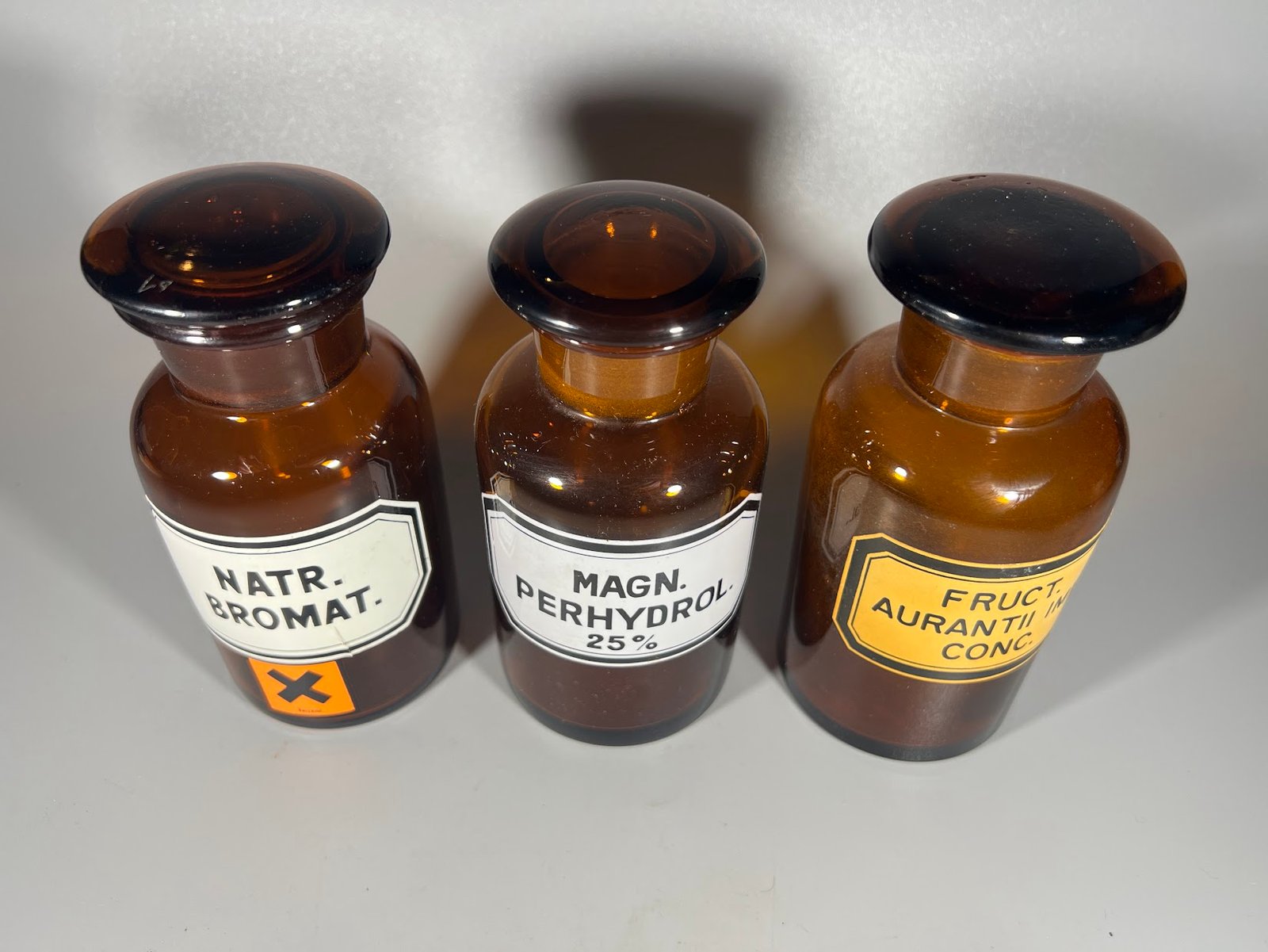 Vaistų, vaistinės buteliukas, buteliukai antikvariniai cilindro formos, gintaro spalvos rudo stiklo, vokiški. 3 vnt. Kaina po 28