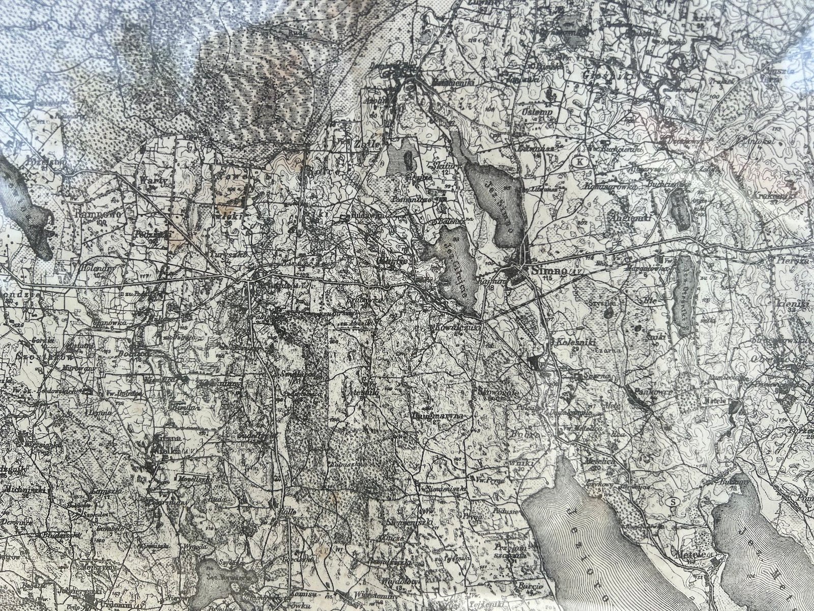 Vakarų Rusijos žemėlapis, vok. Karte des westlichen Russlands, N24 lapas, vaizduojantis Simną ir jo apylinkes. 1915 m. Kaina 68