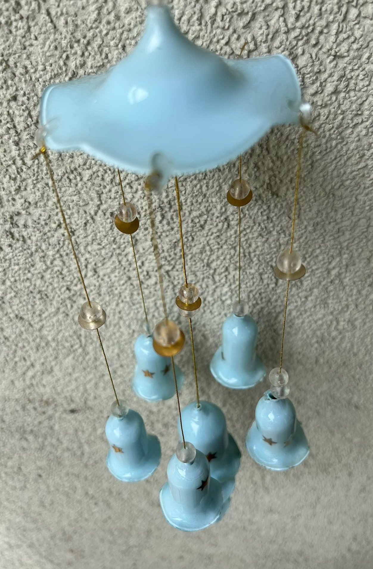 Varpeliai mėlyno stiklo. Visas aukštis 35, konstrukcijos aukštis 25 cm. Kaina 18