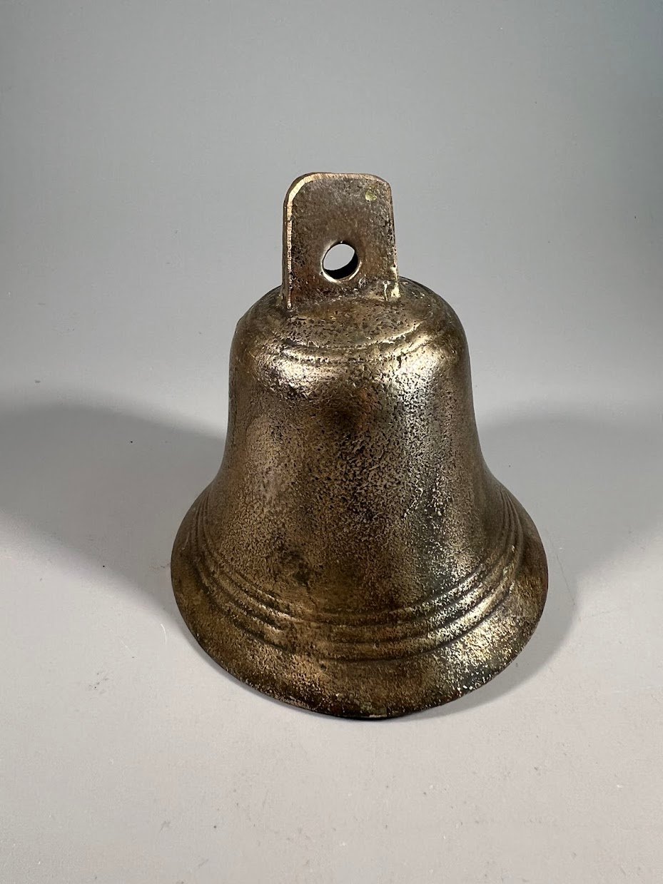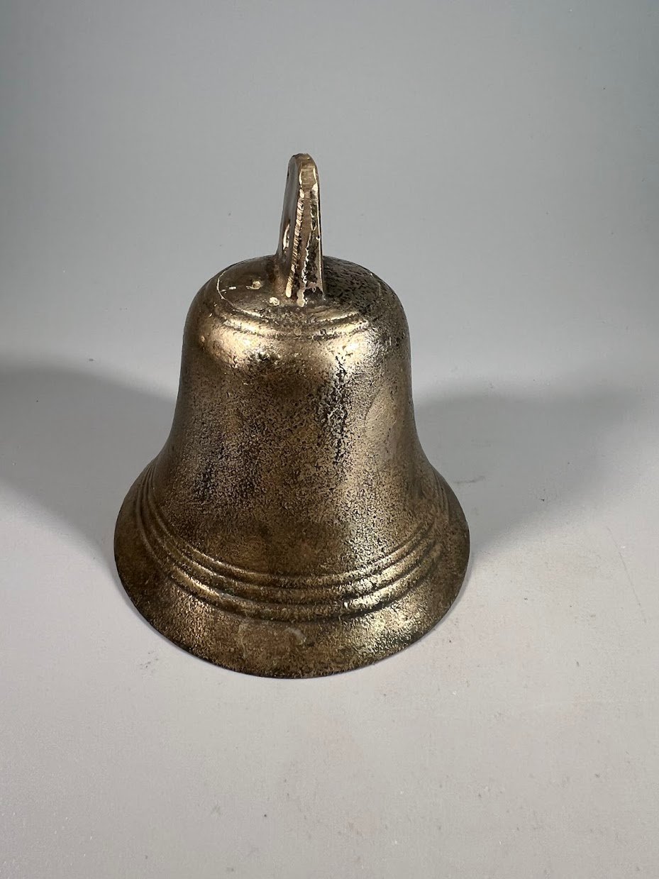 Varpelis antikvarinis, metalinis, prancūziškas. Aukštis 9, skersmuo 8 cm. Kaina 28