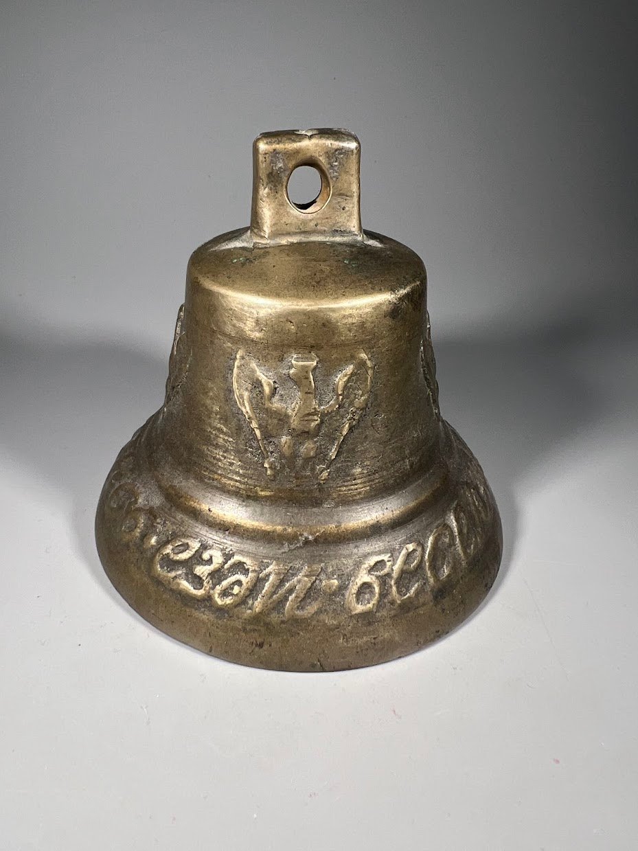 Varpelis Carinės Rusijos imperijos laikų su užrašu: „Купи нискупись езди веселись”. Užrašas senąja rusų kalba. Storasienis, neskilęs, netrūkęs. Svoris 550 gr., aukštis 10 cm., skersmuo 10 cm. Kaina 93