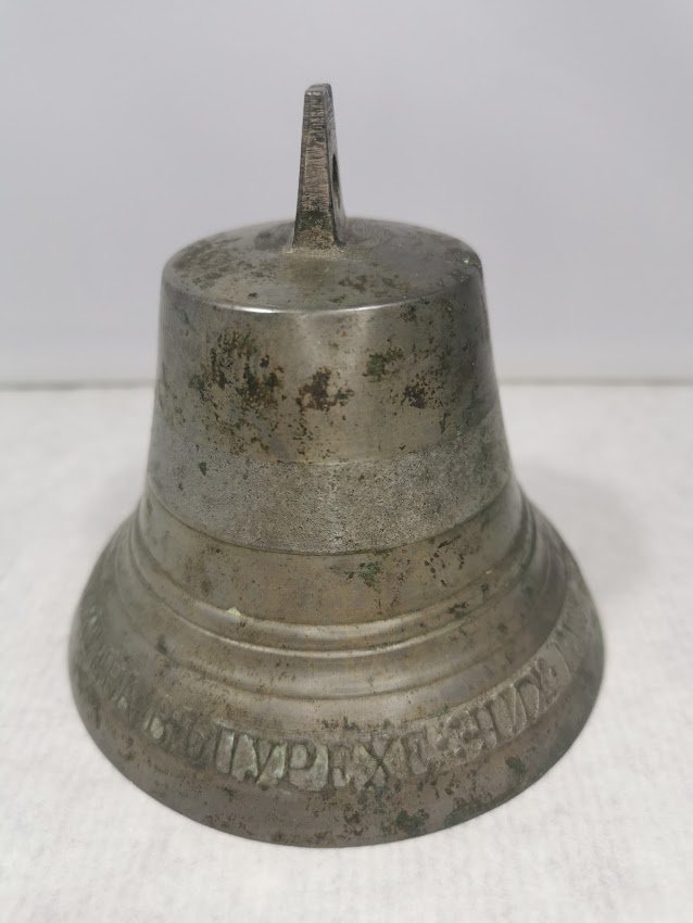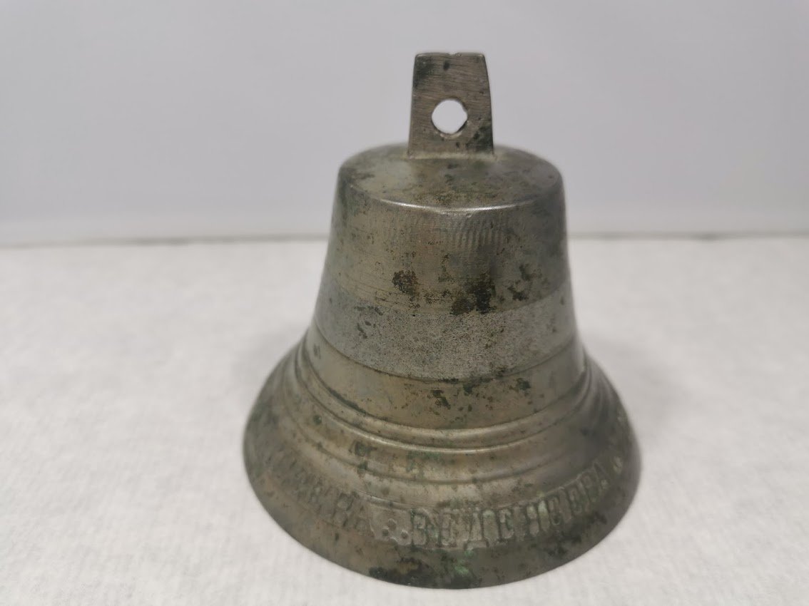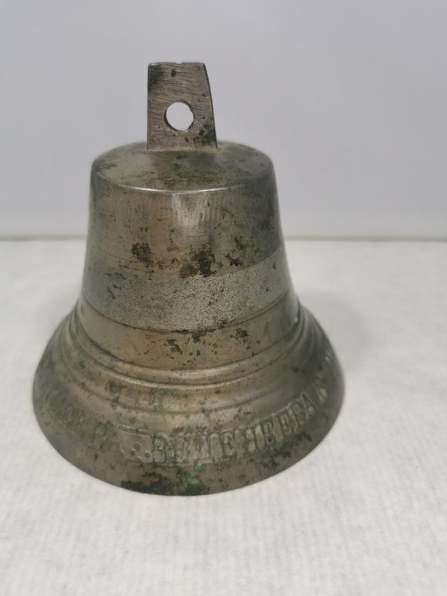 Varpelis Carinės Rusijos laikų su užrašu: „Завода Федарава Алексеева Веденева въ Пурехе Ниж. Губ.”. Neskilęs, netrūkęs. Maloniai skambantis. Svoris 250 gr., aukštis 10 cm., skersmuo 10 cm. Kaina 82