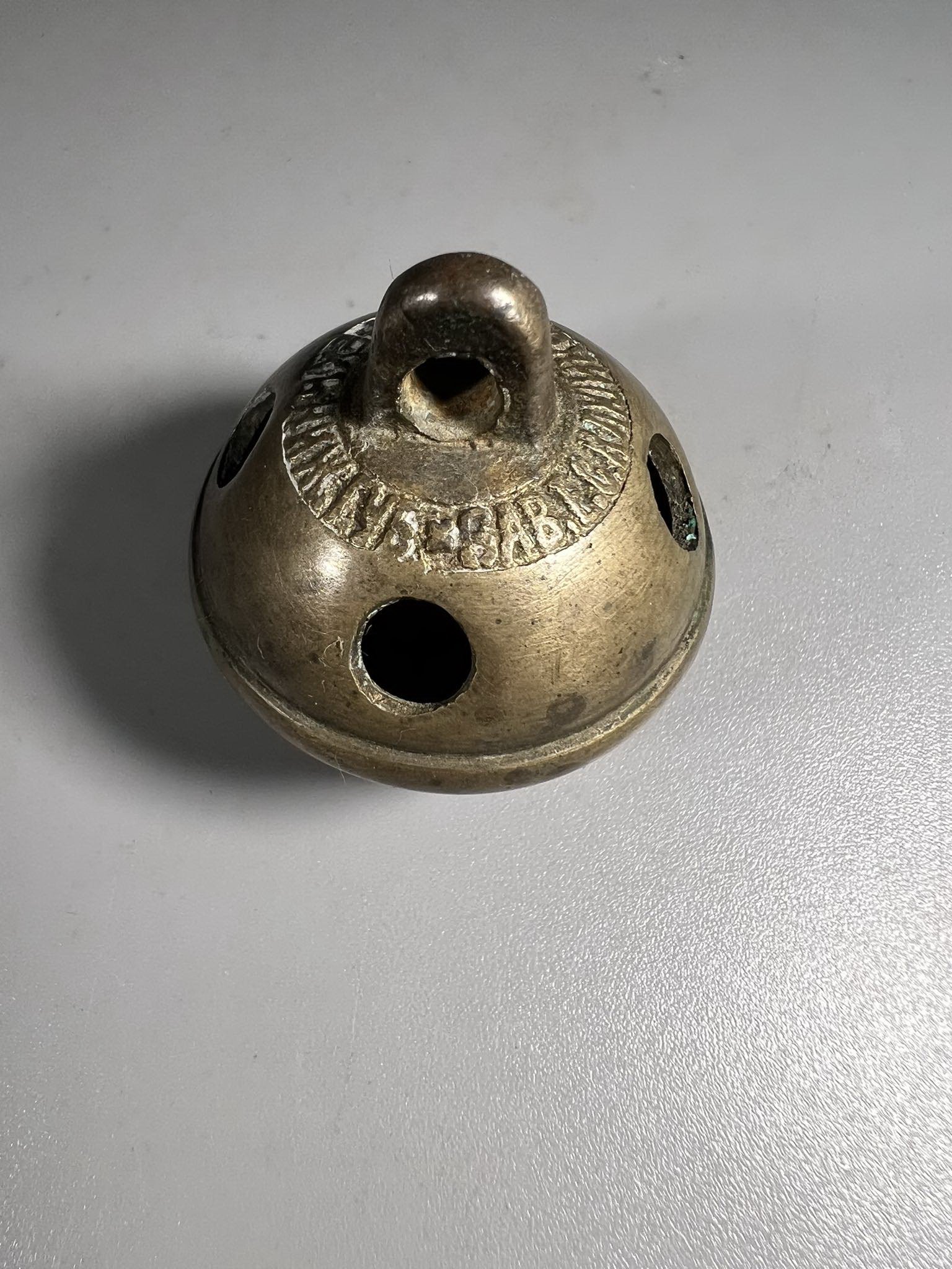 Varpelis, žvangulis, apvalus, pakabinamas, antikvarinis, carinės Rusijos imperijos laikų. Aukštis 4 cm. Kaina 23