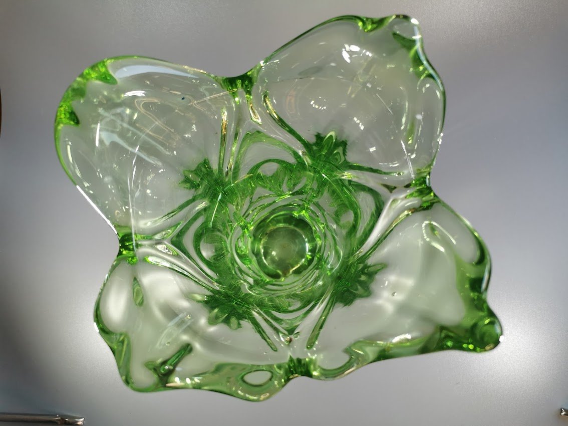 Vaza antikvarinė, storo, žalio stiklo. Svoris 3 kg. Kaina 53