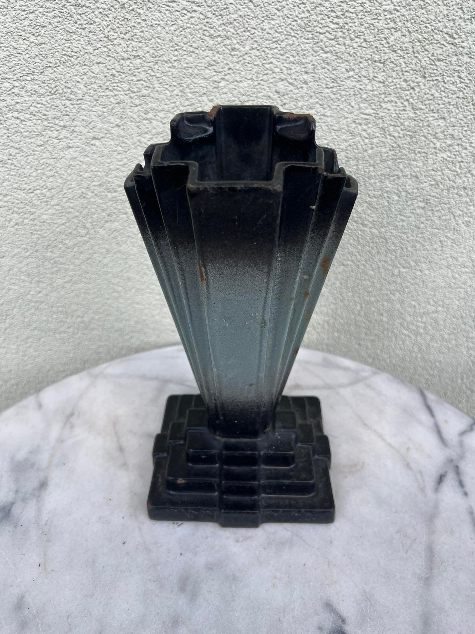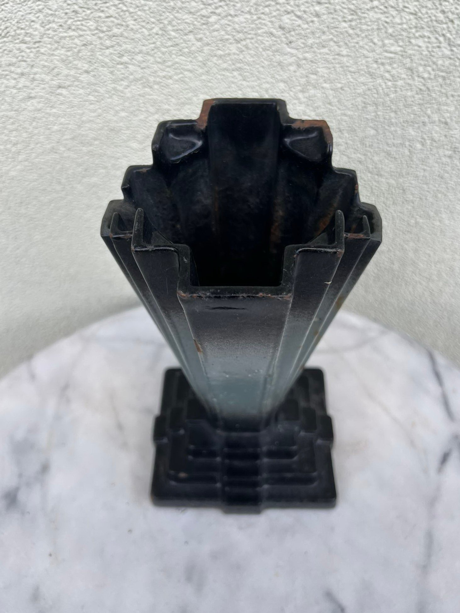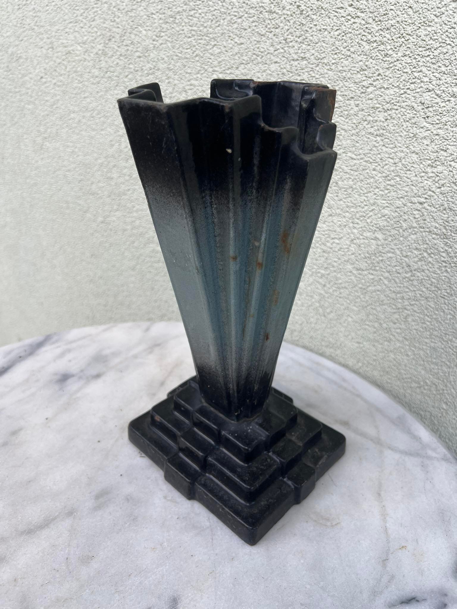 Vaza Art Deco, emaliuoto ketaus, špižinė, antikvarinė, Ebe Verken Husqvarna. Pagaminta apie 1930 m. Svoris 4 kg., aukštis 28, pagrindo dydis: 16 x 13 cm. Kaina 78