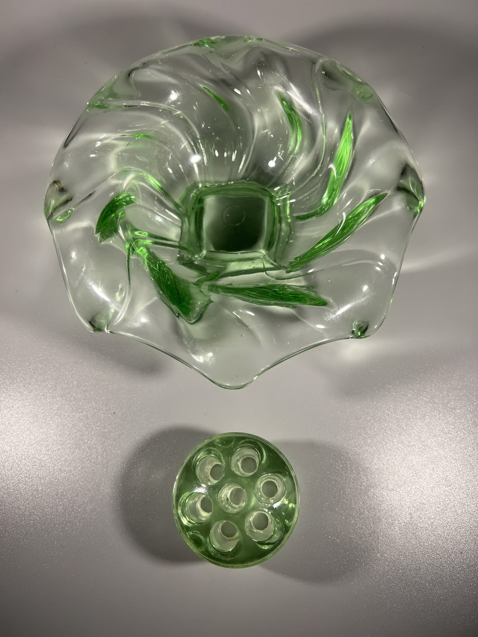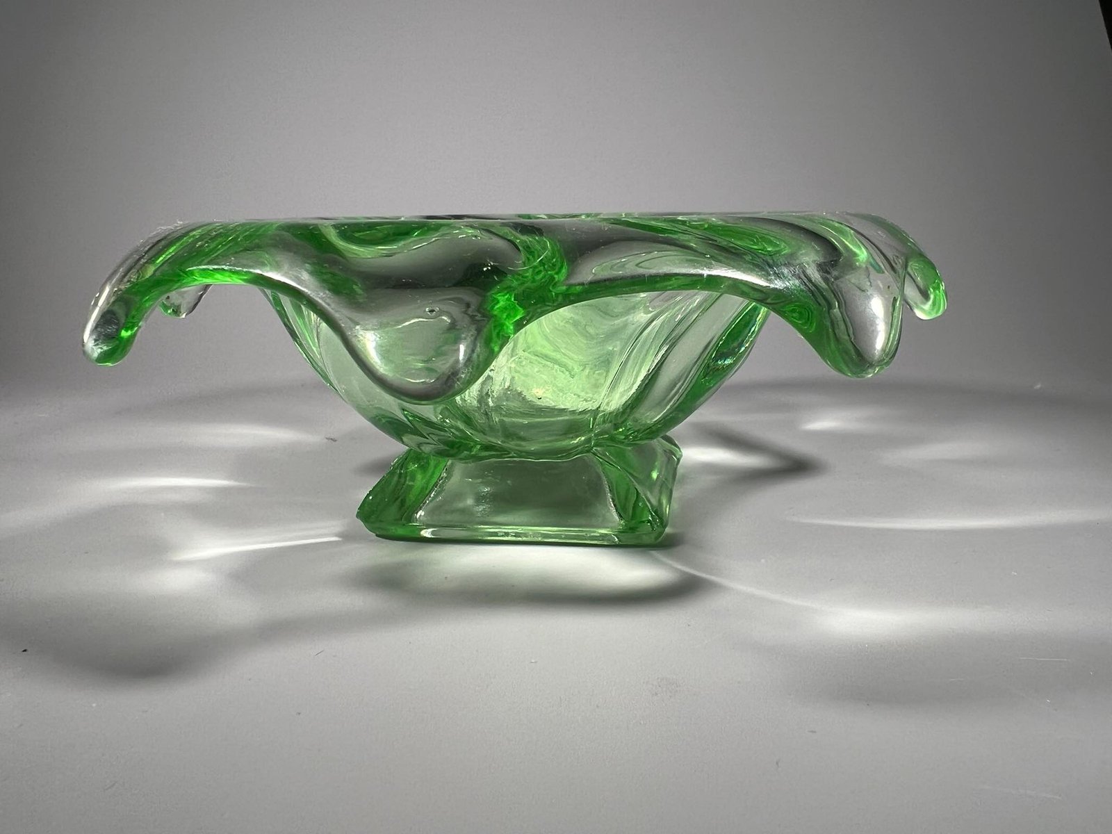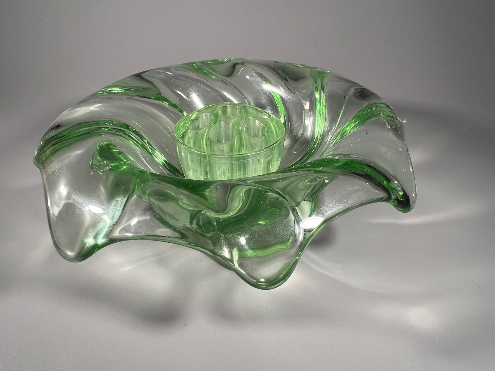 Vaza gėlėms antikvarinė, Bagley Glass, Equinox, Made in England, Art Deco stiliaus, 1930 m. Skersmuo 18, aukštis 6 cm. Kaina 33