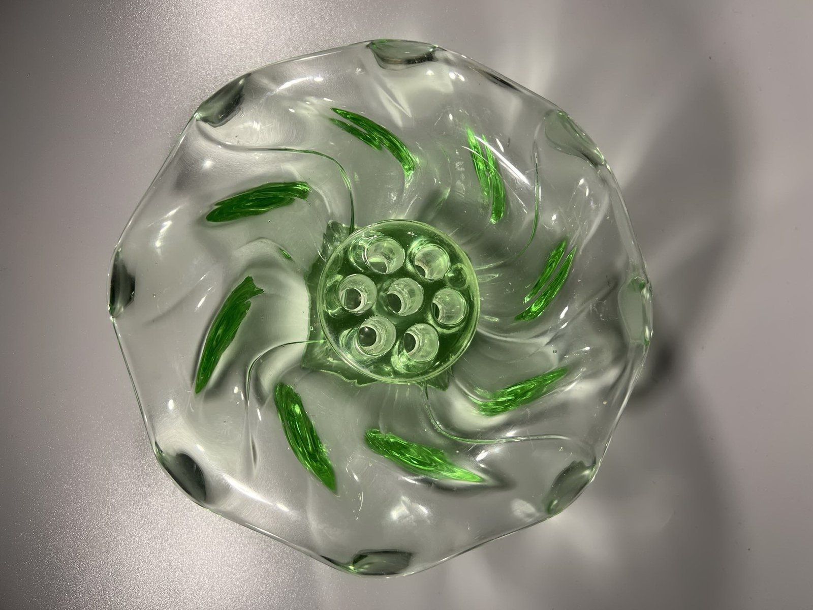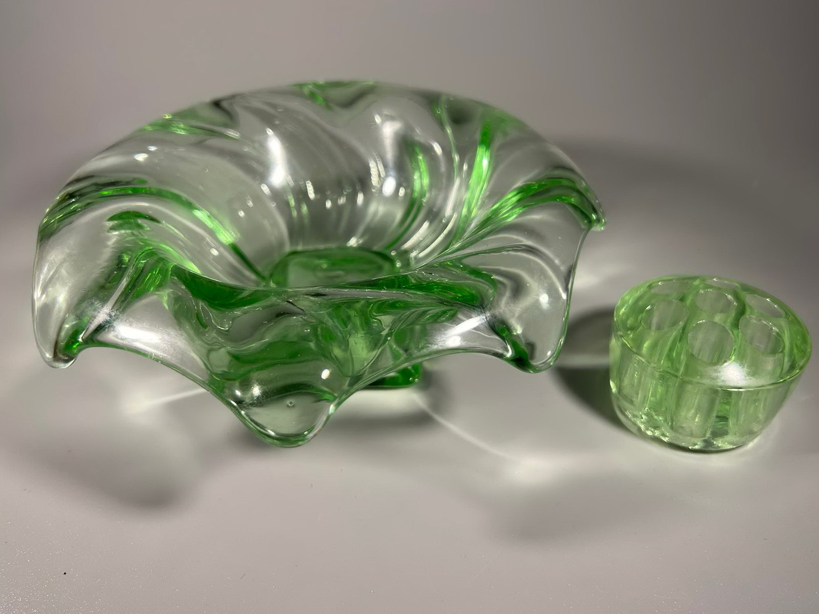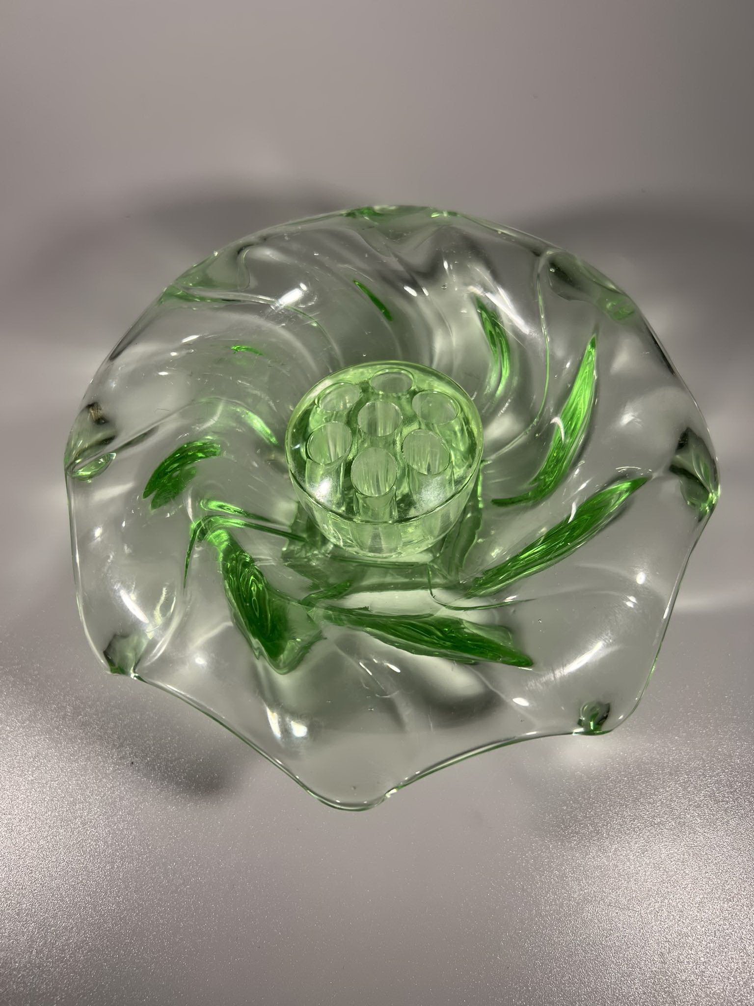 Vaza gėlėms antikvarinė, Bagley Glass, Equinox, Made in England, Art Deco stiliaus, 1930 m. Skersmuo 18, aukštis 6 cm. Kaina 33