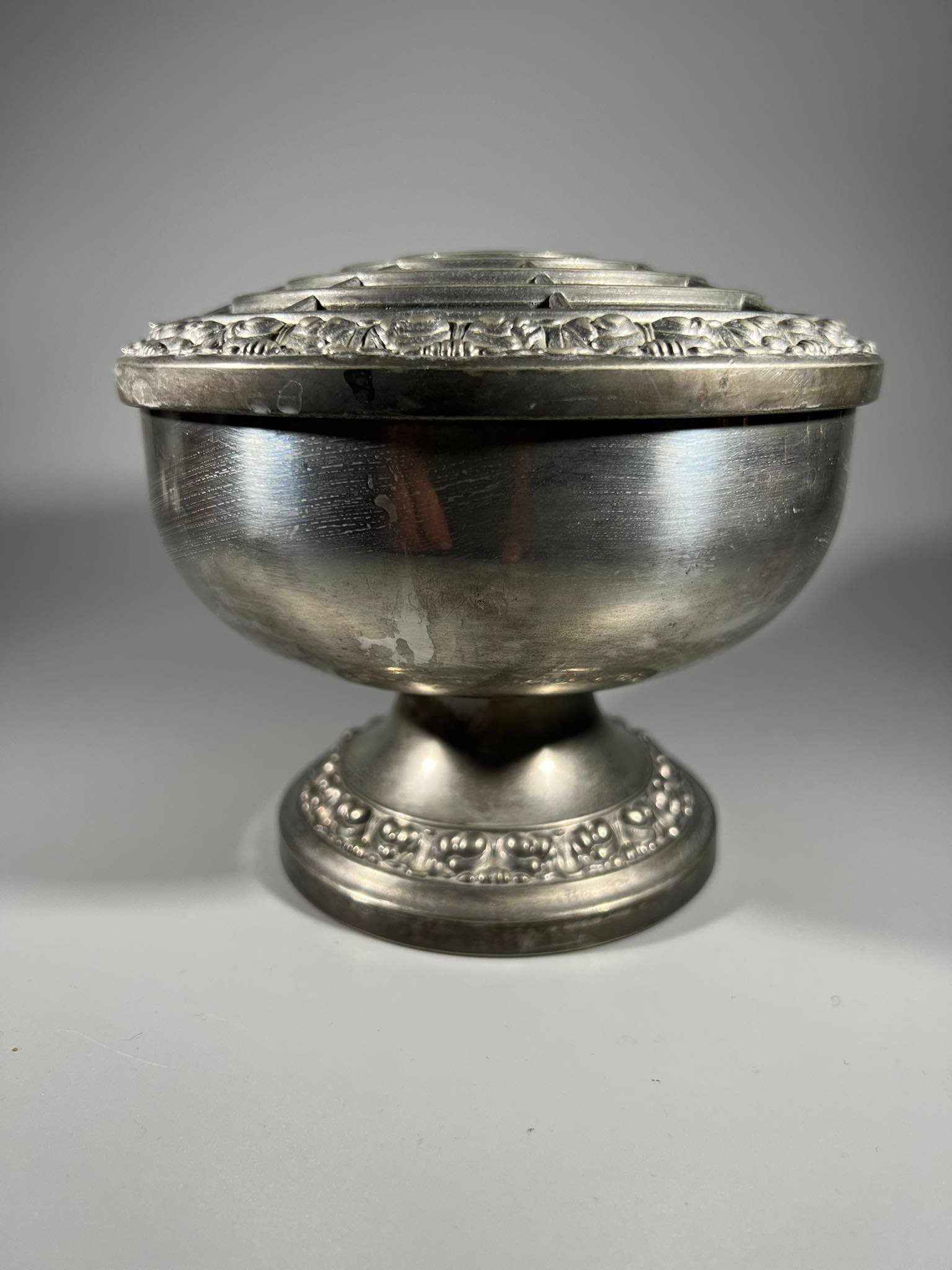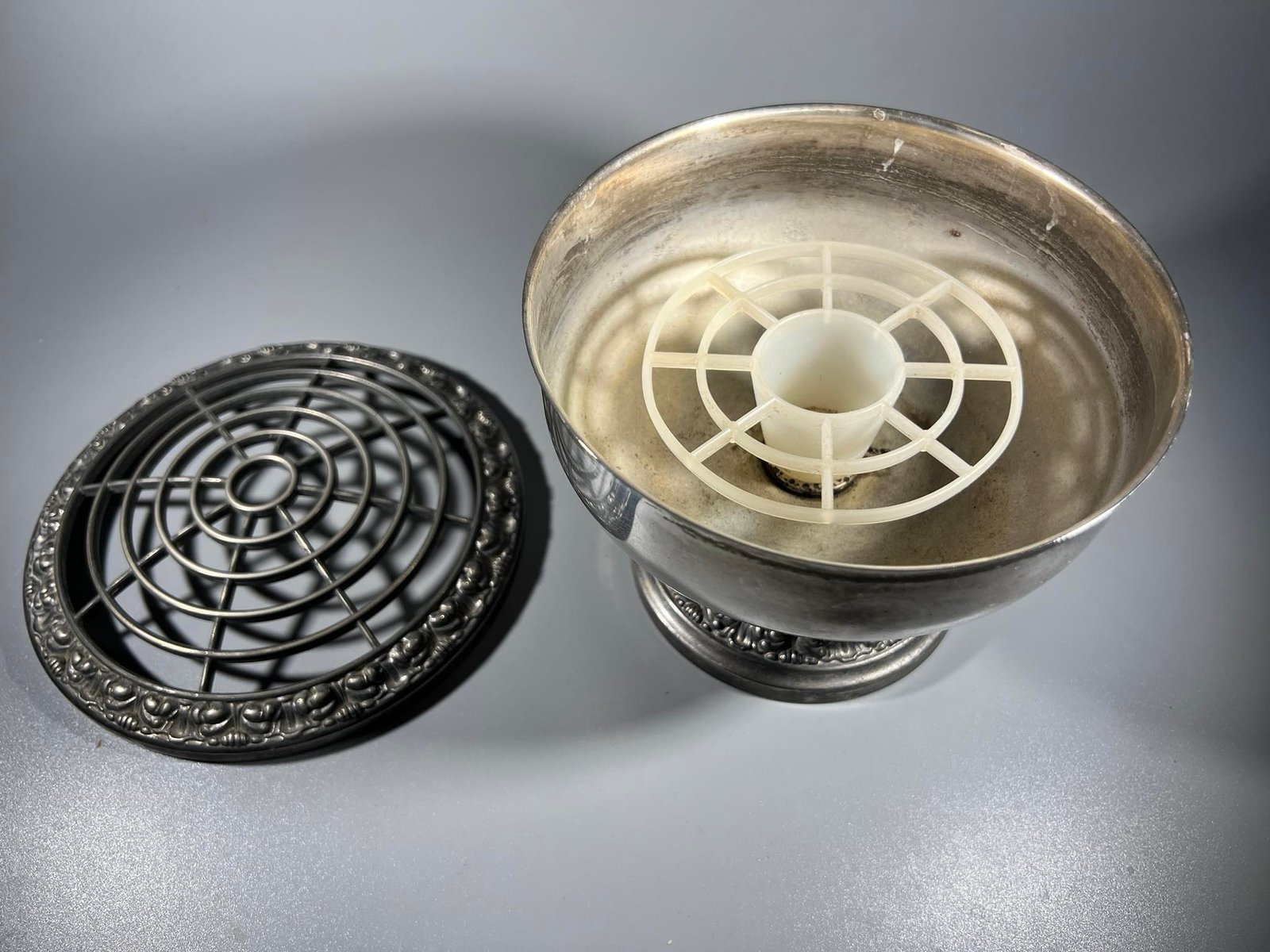 Vaza gėlėms metalinė, vintažinė, angliška. Aukštis 14, skersmuo 15 cm. 2 vnt. Kaina po 28