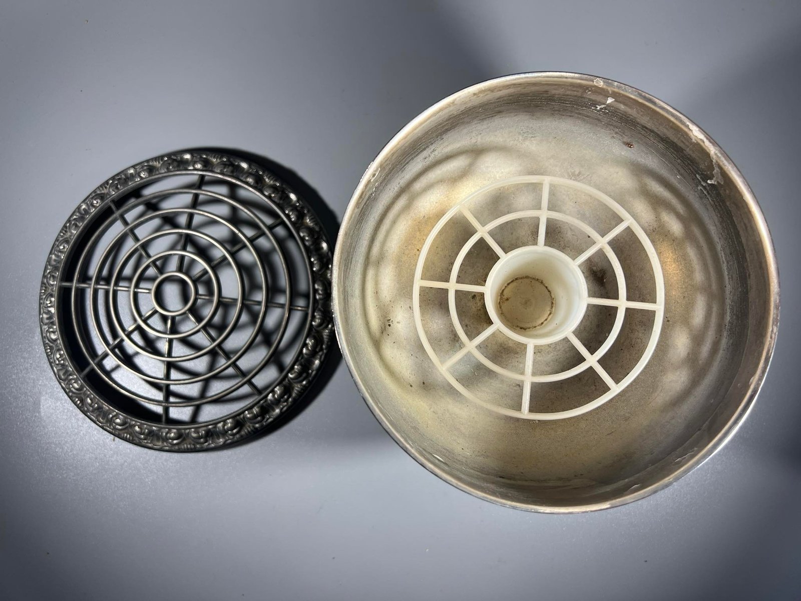 Vaza gėlėms metalinė, vintažinė, angliška. 2 vnt. Kaina po 28
