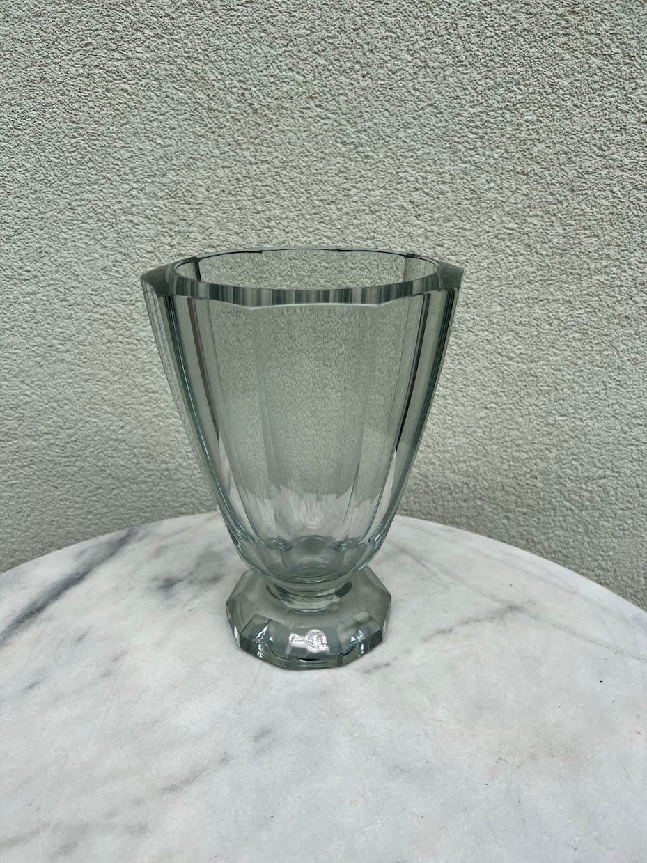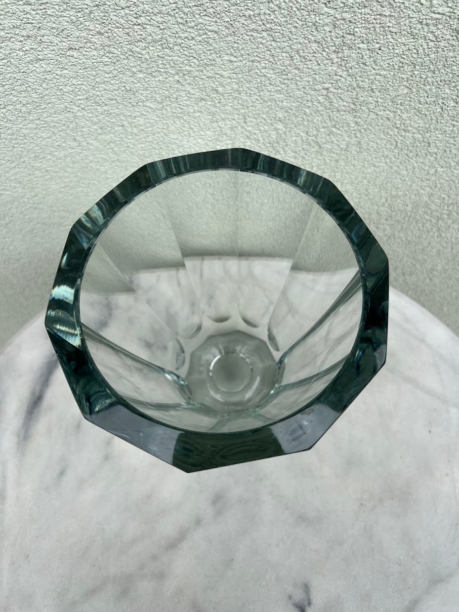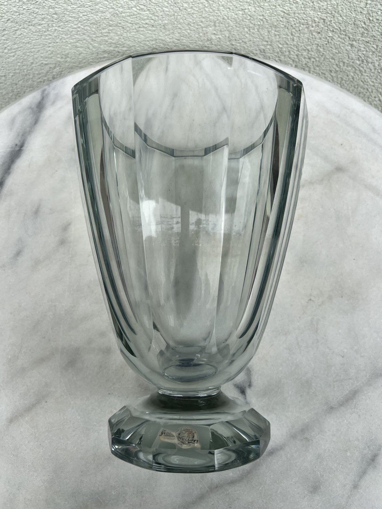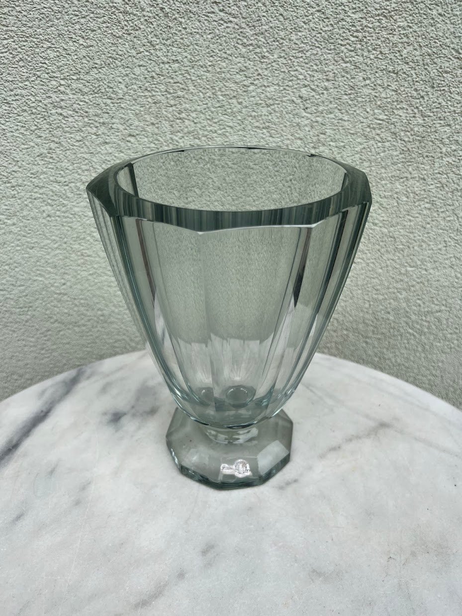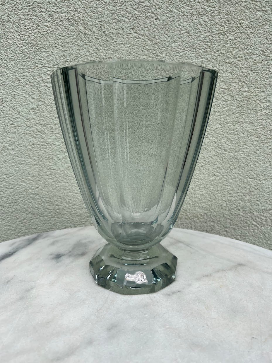 Vaza meninio stiklo, Asta Stromberg Swedish Mid Century Style Art Glass Vase. Svoris 4 kg. Aukštis 25, viršutinis skersmuo 19 cm. Išlikusi etiketės dalis. Kaina 43