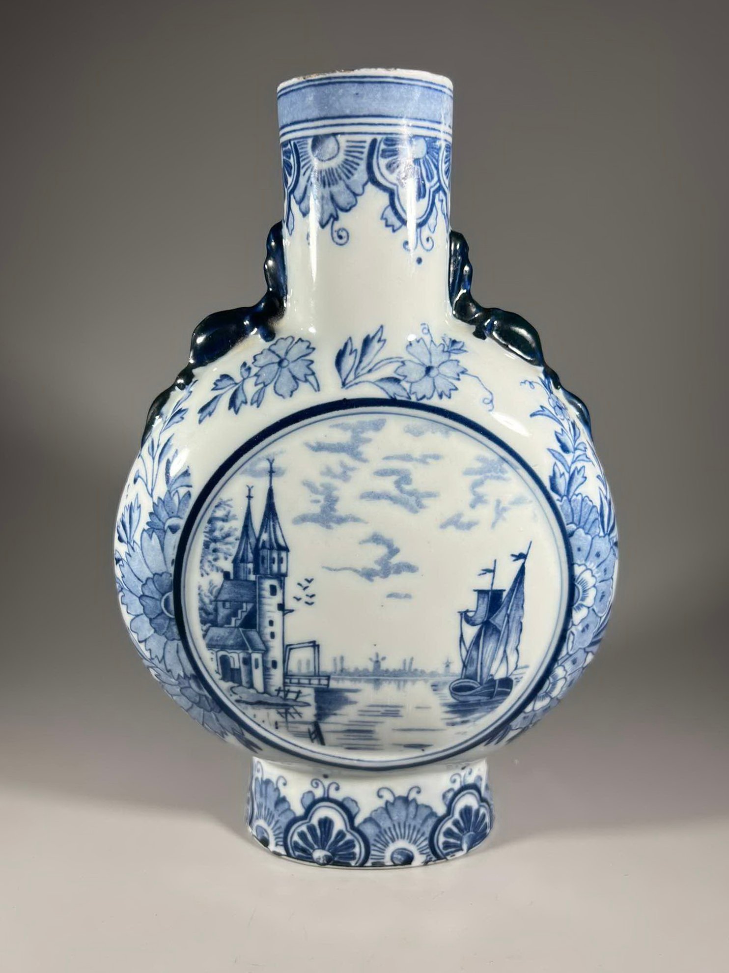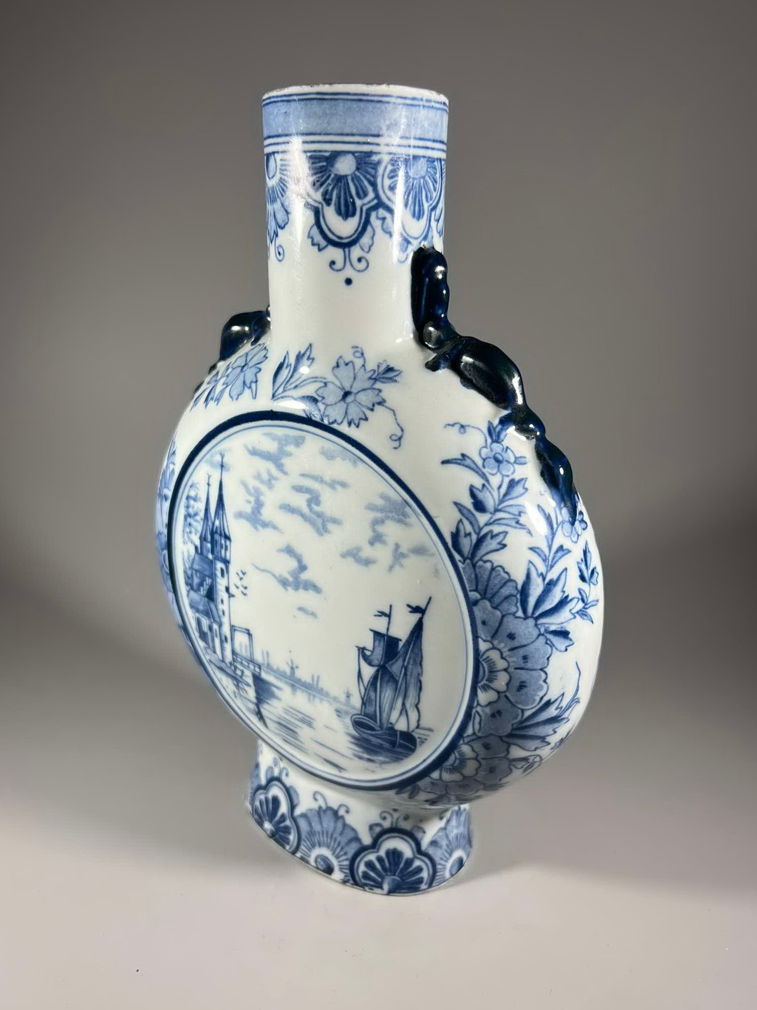 Vaza porcelianinė Delft, Olandija. Aukštis 22, plotis 15 cm. Kaina 33