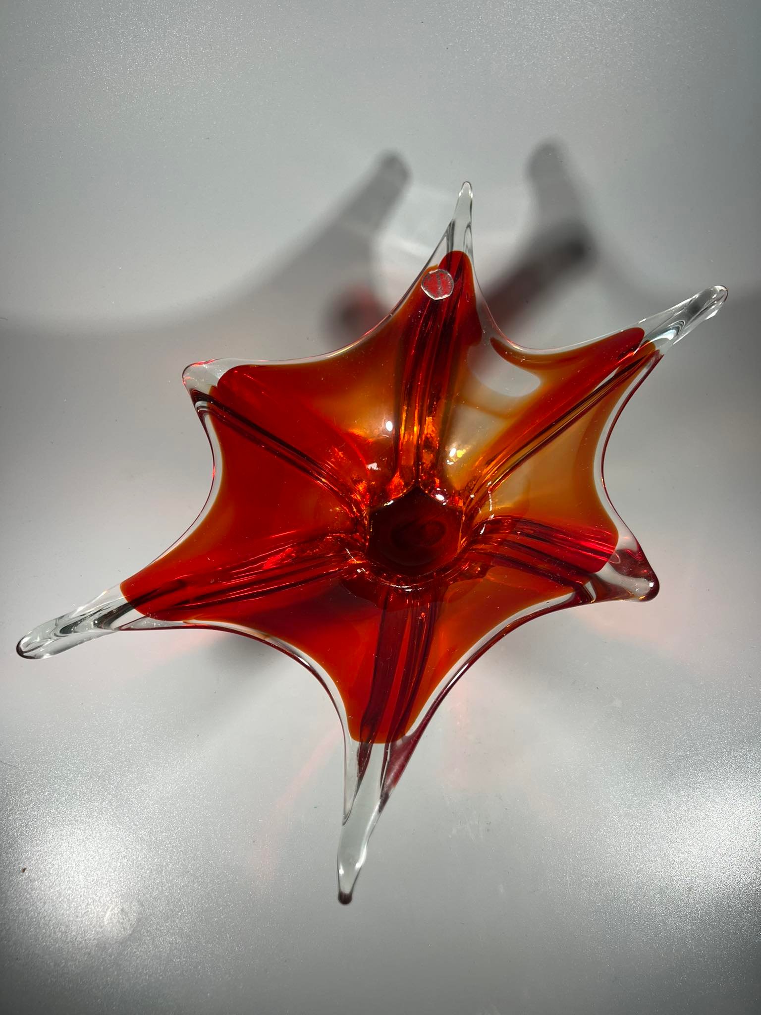 Vaza, saldaininė vintažinė, Murano stiklo. Made in Italy. Ilgis 35, aukštis 9, plotis 23 cm. Kaina 87